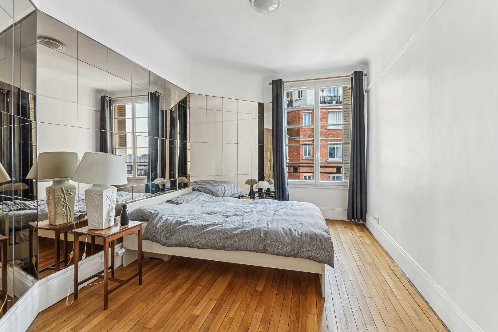 Rare ! Proximité immédiate du métro Jourdain, rue des Pyrénées à l'écart au calme, dans un bel immeuble ancien type Art déco avec ascenseur au quatrième étage, superbe appartement 2 Pièces 53 m² comprenant : vaste entrée, séjour, 1 chambre, cuisine aménagée-équipée, salle de bains, wc séparés. Appartement lumineux, bien orienté avec vue dégagée. Parquet, cheminée, beaux volumes. Double entrée avec accès par escalier de service. Cave en sous-sol. A ne pas manquer.