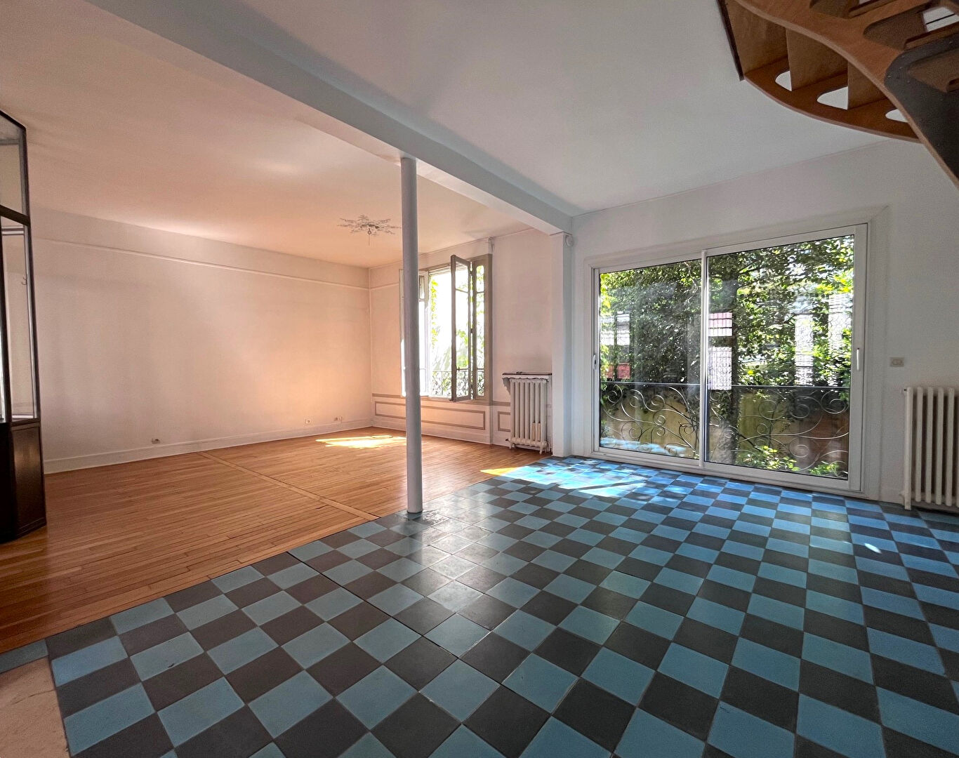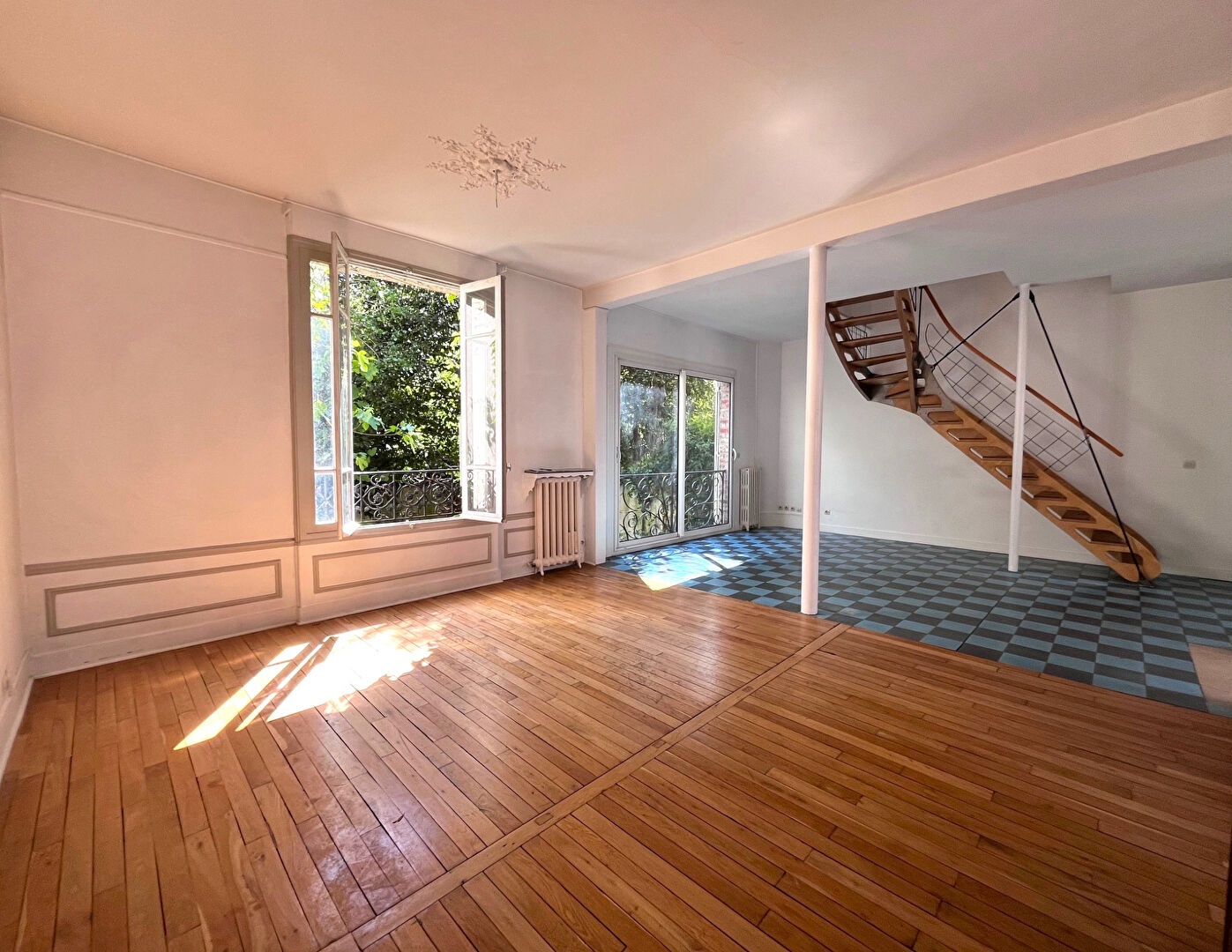 Jolie maison de 125 m² sur trois niveaux avec jardin arboré de 50m² composé au rez-de-chaussée surélevé, d'une entrée, un double séjour traversant de 42 m² avec bureau attenant en verrière, en rez-de-chaussée sur jardin une cuisine dinatoire, une chambre, une salle d'eau, wc séparés et à l'étage, trois chambres, une salle de bains avec wc et accès aux combles par échelle. La maison est située dans un passage privilégié "La campagne à Paris" - à 4 min à pied du Métro Porte de Bagnolet et du Tramway Séverine.