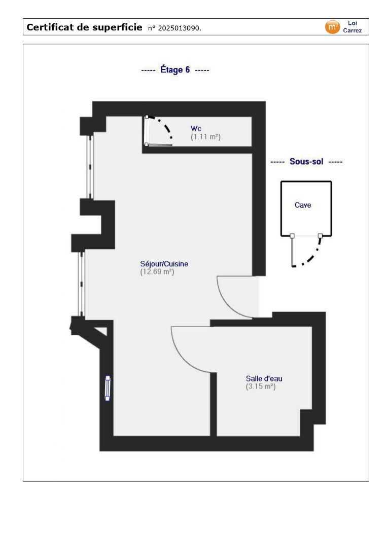 Au 6ème étage (ascenseur voté et payé - installation courant premier semestre 2026) il se compose d'une pièce principale avec cuisine ouverte équipée, une salle d'eau et un W.C indépendant.