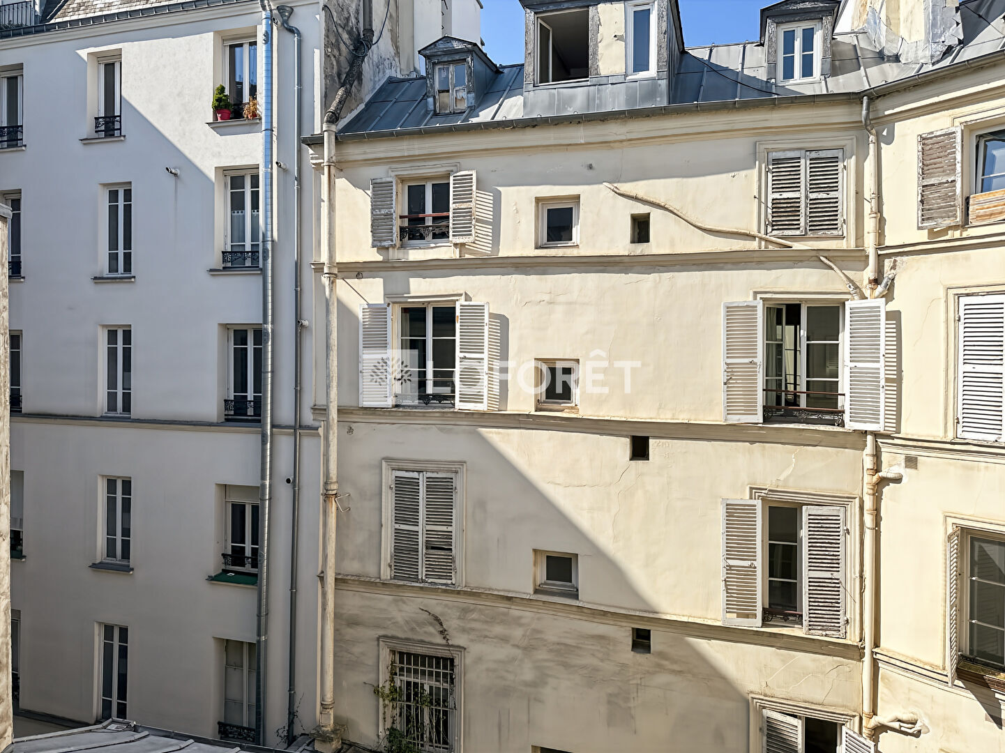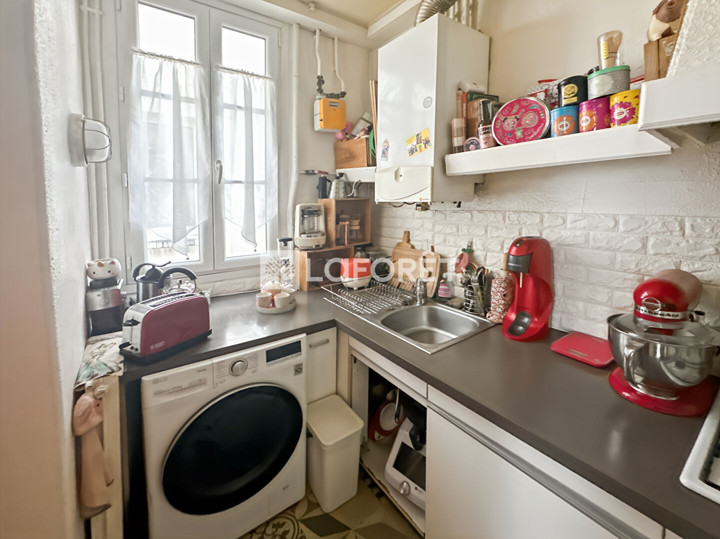 Au troisième étage sans ascenseur d'une jolie copropriété du quartier des Enfants Rouges, un appartement de deux pièces qui se compose : d'une entrée avec un W.C et un placard, un séjour avec cuisine attenante et une chambre avec sa salle de bains.