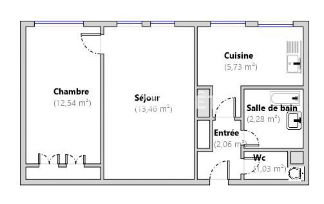 Au 1er étage sur cour avec ascenseur, un appartement de deux pièces qui se compose d'une entrée, une cuisine indépendante, une salle de bains, un W.C, un séjour sur cour arborée orienté Sud et une chambre avec la même orientation.