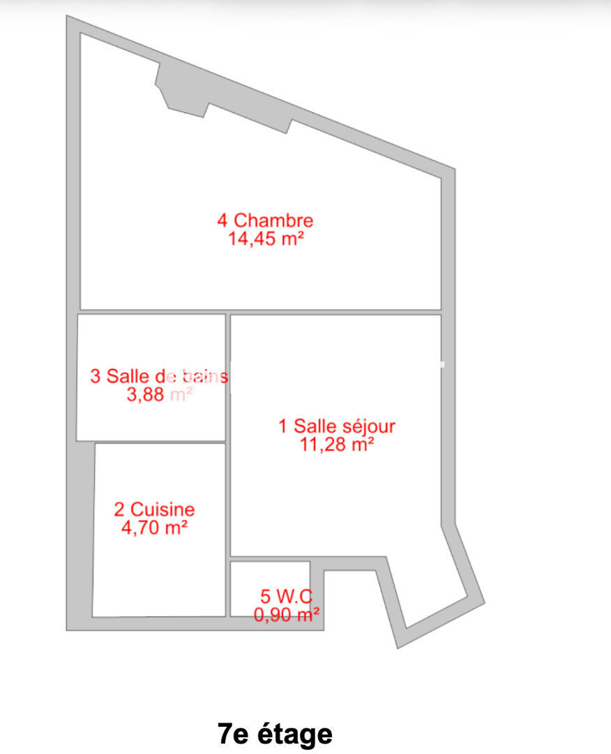 Il comprend un séjour, une cuisine séparée, une chambre, une salle de bains et des WC indépendants. Plan modulable, quasi sans murs porteurs. Cagibi privatif sur le palier.
