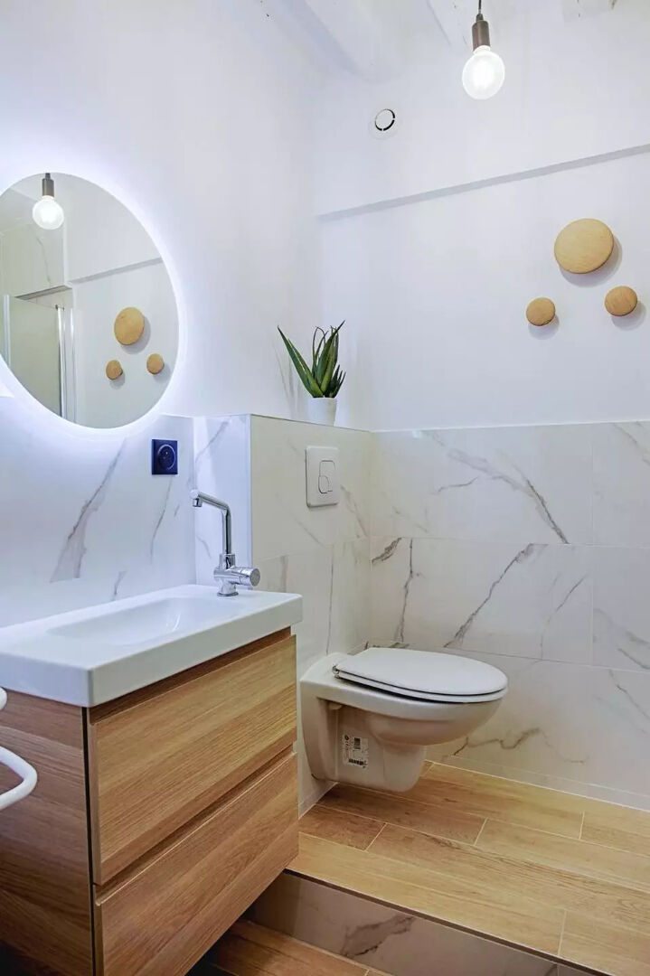 Il est composé d'une pièce de vie spacieuse, d'une cuisine entièrement équipée, d'une salle d'eau avec WC et d'une douche,
