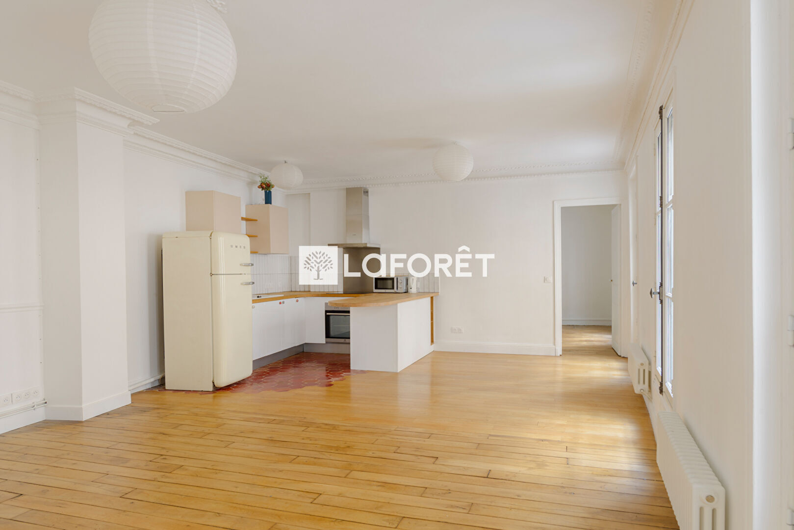 L'appartement se compose d'une entrée desservant un vaste séjour avec cuisine ouverte de plus de 30m², une belle chambre avec dressing, une salle de bain et un WC indépendant.