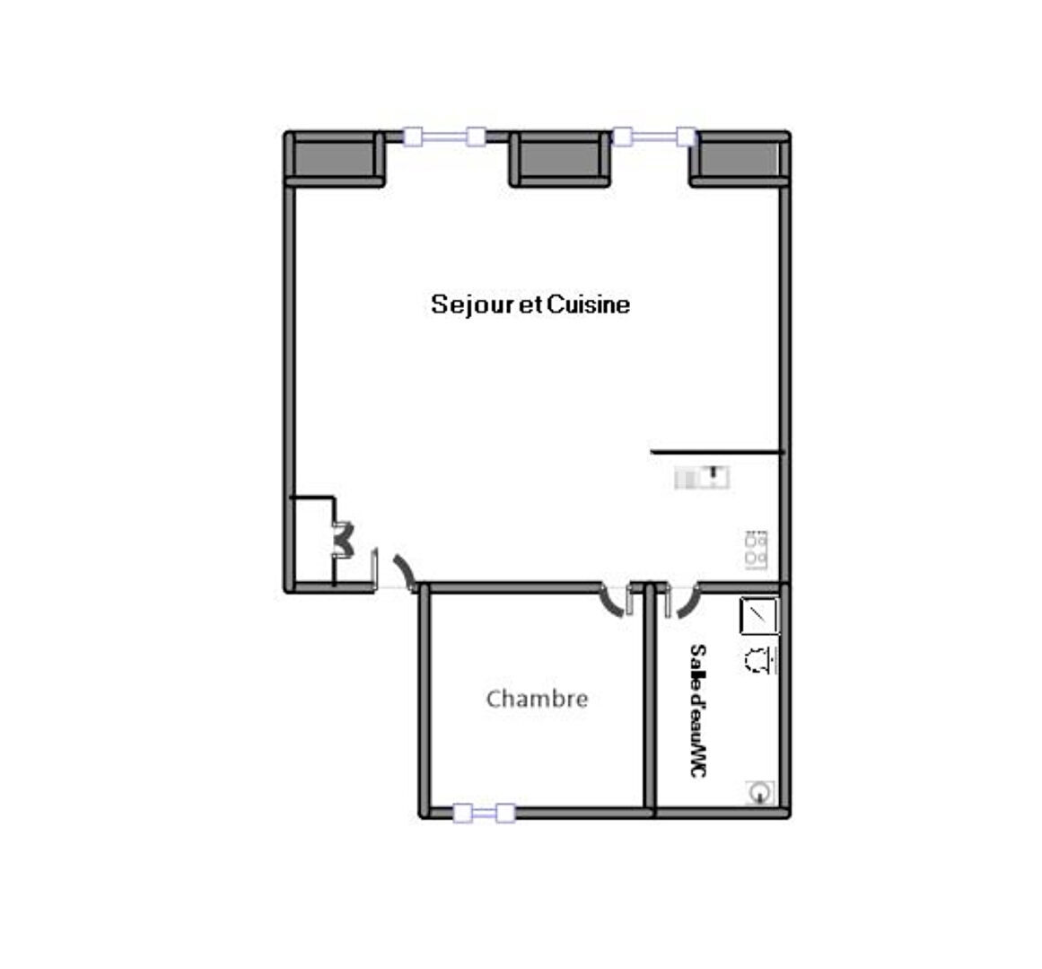 Il se compose d'un séjour avec cuisine ouverte, d'une chambre au calme, ainsi que d'une salle d'eau avec WC.