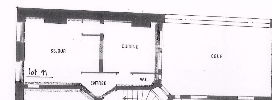 Séjour avec deux grandes fenêtres, une chambre et une salle de bain avec wc sur cour au calme.
