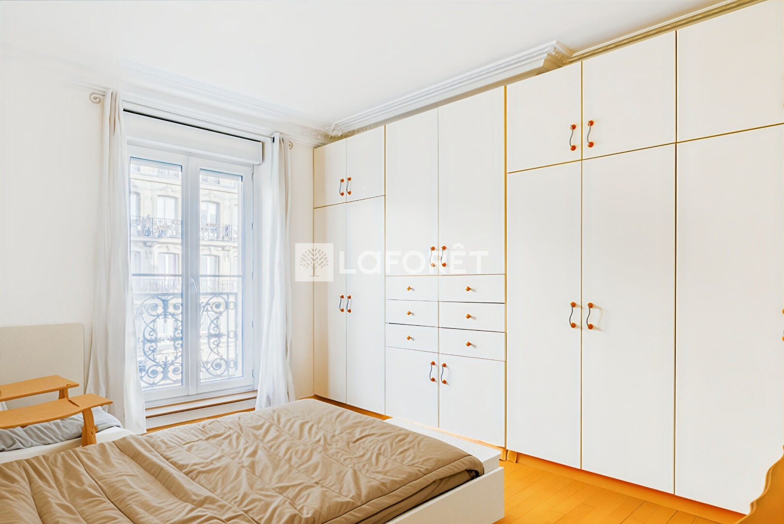 L'appartement se compose d'une entrée avec rangements, d'une cuisine séparée et d'un séjour modulable pouvant être porté à plus de 30 m² en l'ouvrant sur une première chambre avec balcon privatif.