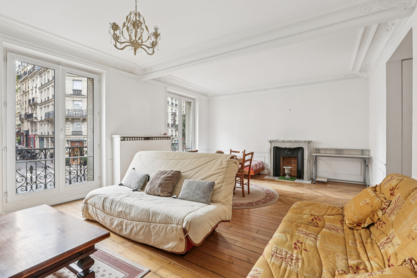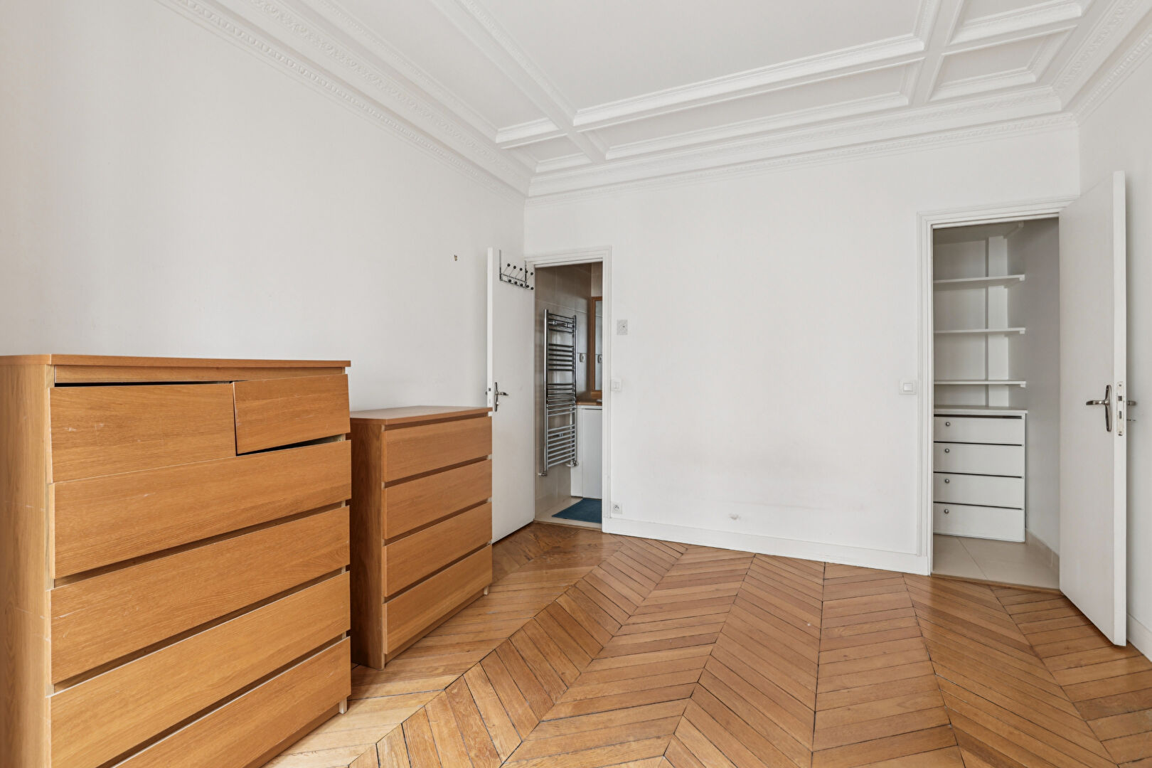 Appartement 2 pièces de 61.34m², plan en étoile, belle hauteur sous plafond ornée de moulures et parquet massif en point de Hongrie ; agencement soigné, lumineux, avec grand dressing et cuisine indépendante entièrement équipée.