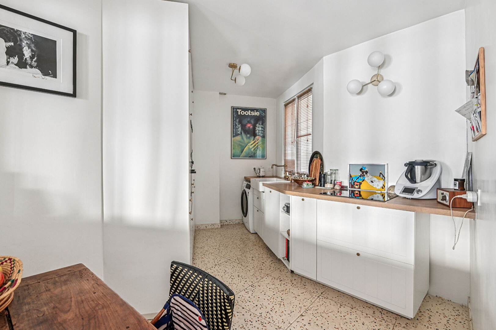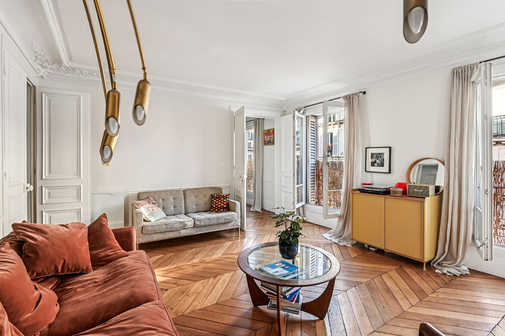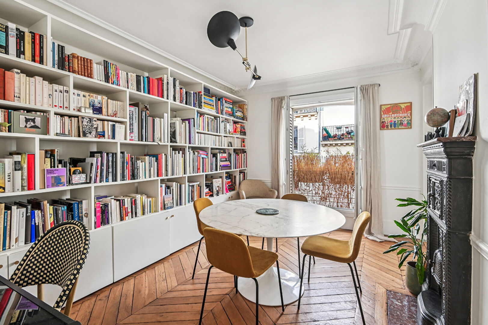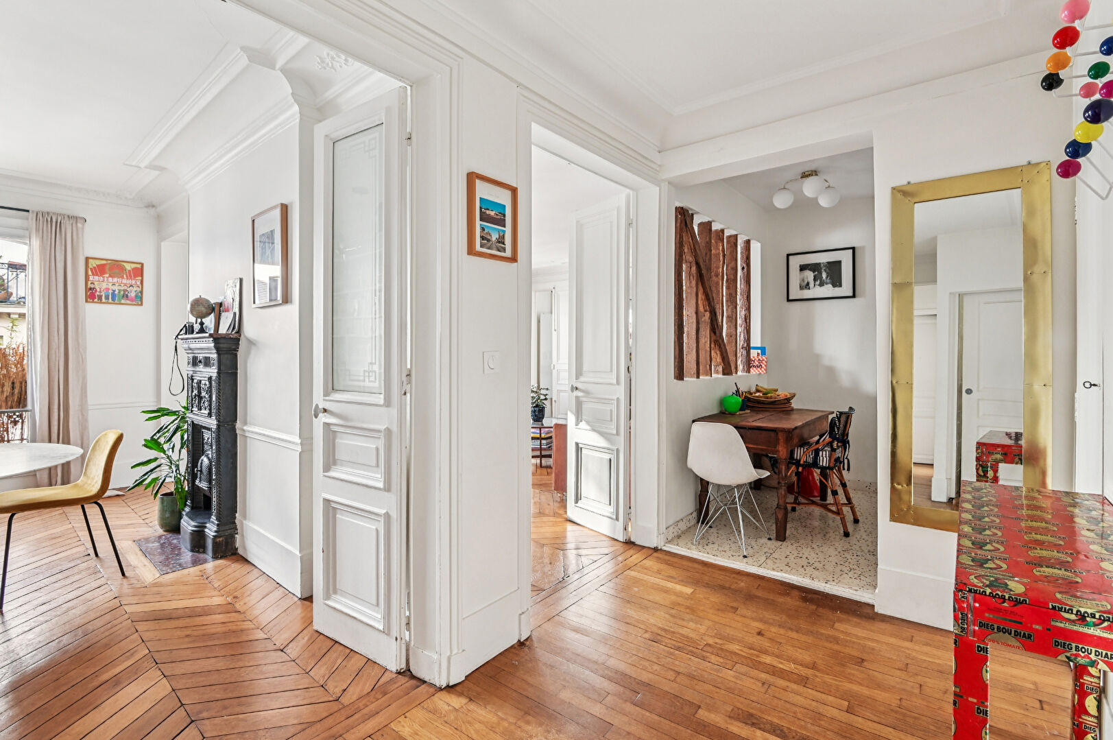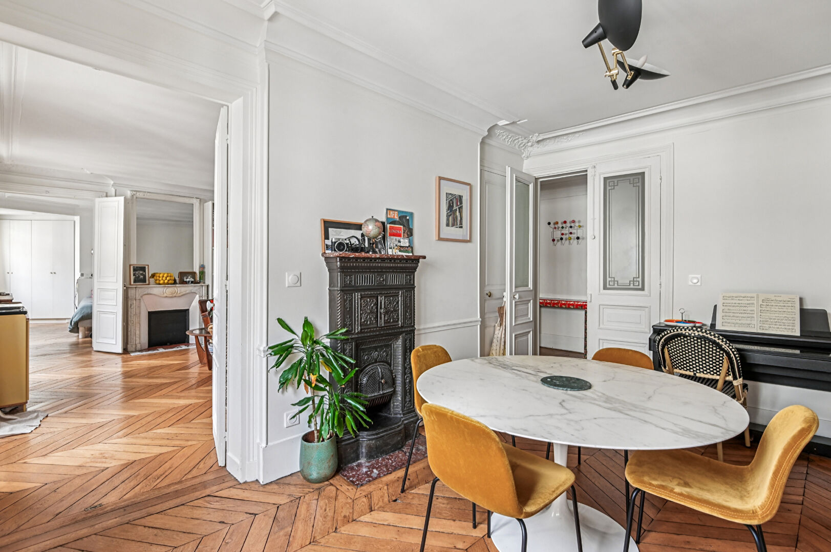 Les prestations anciennes: parquets en point de Hongrie, moulures, cheminées en marbre, belle hauteur sous plafond confèrent à cet espace une élégance intemporelle et un charme authentique.