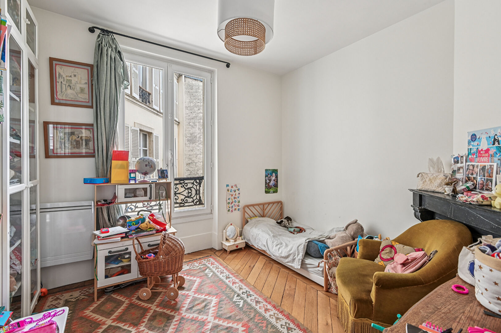 Élégant appartement familial rénové par architecte au 4eme étage avec ascenseur d'un immeuble haussmannien.