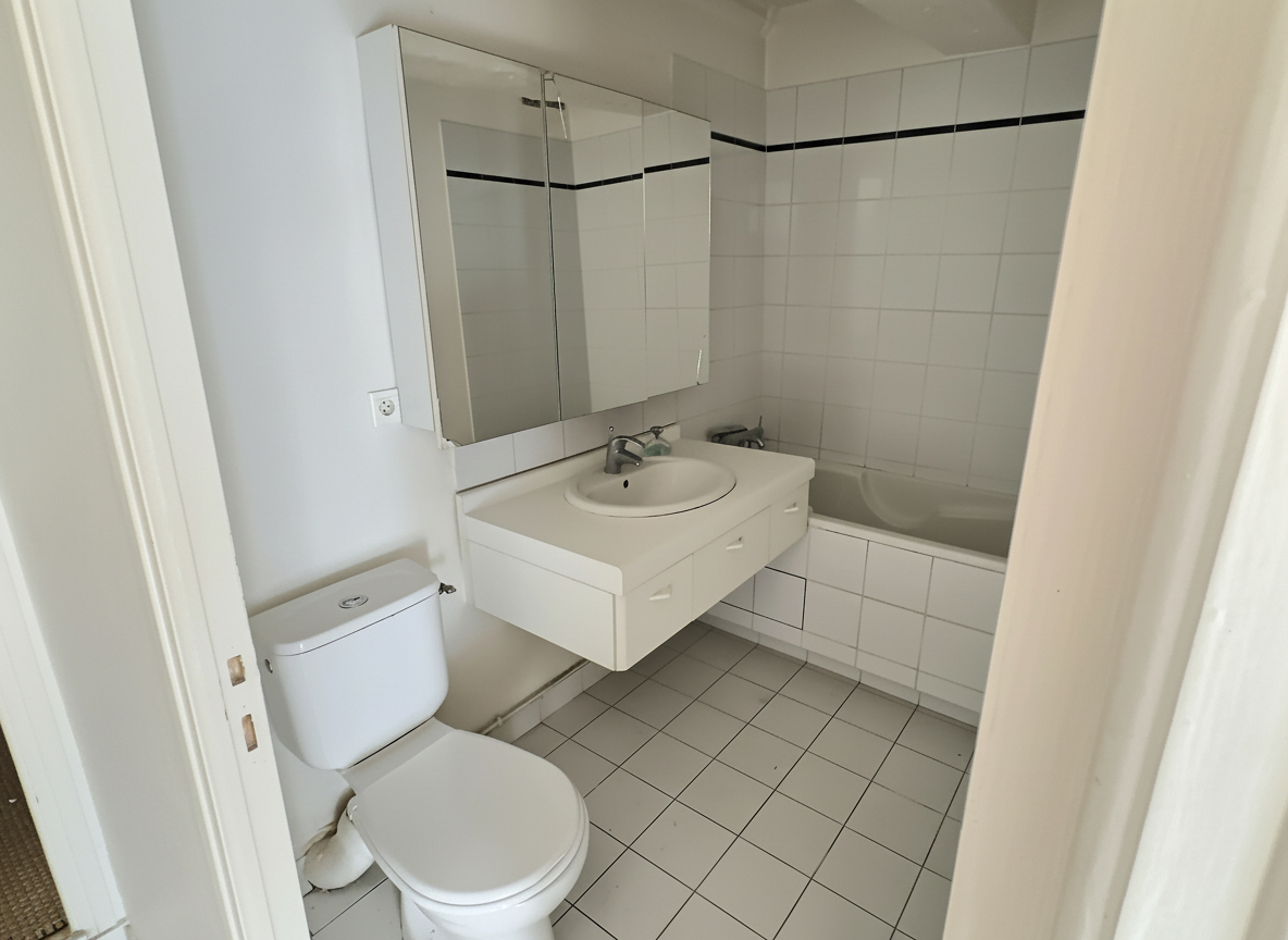 Il comprend une entrée, un séjour avec cuisine semi ouverte donnant sur rue, une chambre sur cour, une salle de bains avec WC et un dressing.