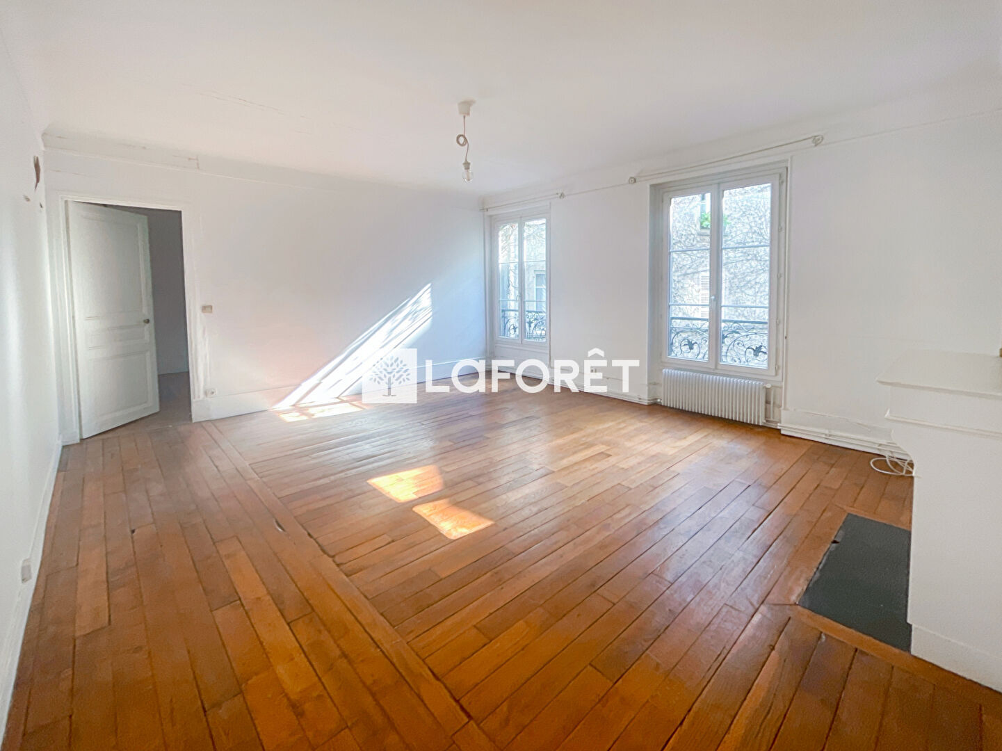 Fenêtres double vitrage, parquet, moulures, cheminée et belle hauteur sous plafond de 2.71M.