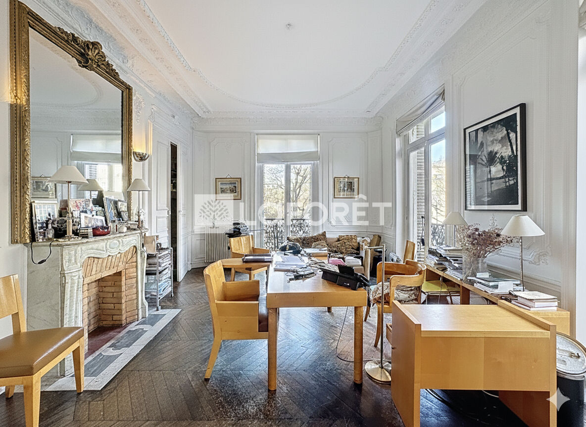 Baigné de lumière, vous serez séduit par le charme et le potentiel de ce bien : belle HSP de 3.20mètres, parquet en pointe de Hongrie, moulures et cheminées. Actuellement configuré en 6 pièces, cet appartement est entièrement à rénover, offrant ainsi une "carte blanche" idéale pour concevoir un lieu de vie familial d'exception ou des bureaux de prestige. Il comprend : une cuisine (nue), une salle de bain, un WC, ainsi que 6 bureaux dont la majorité s'ouvre sur un balcon à la vue dégagée. Bien rare sur le marché, à voir rapidement !