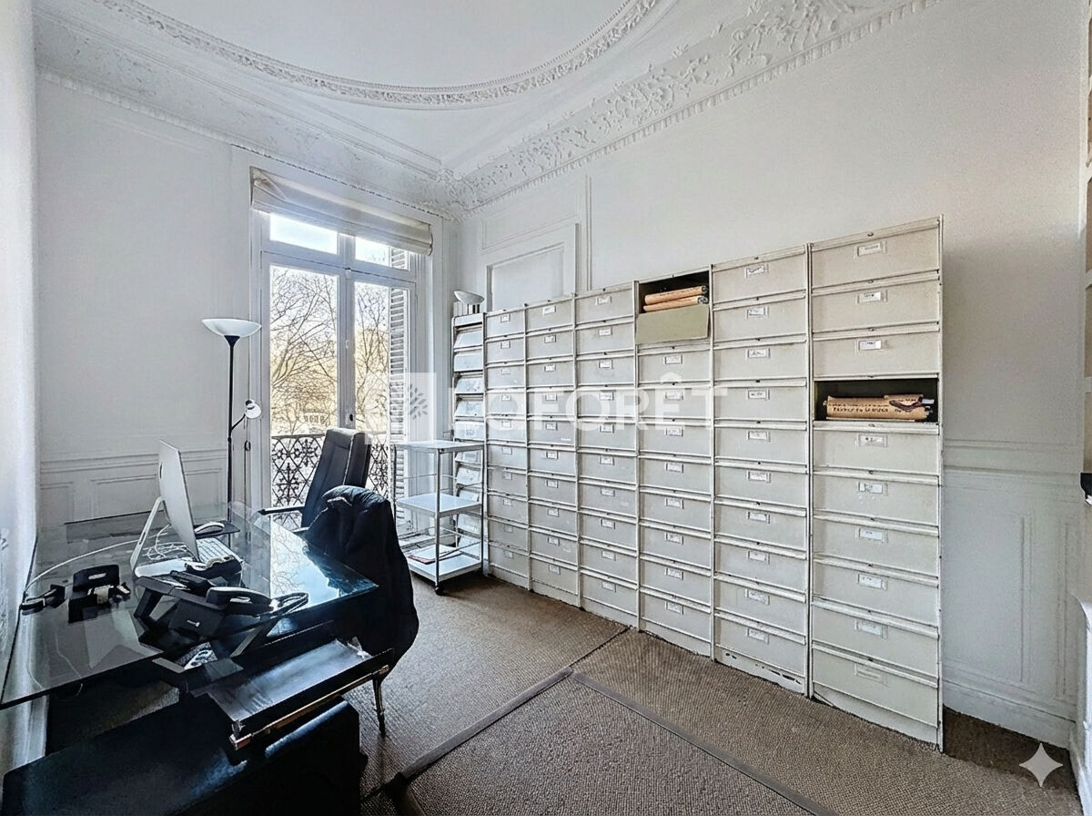 Baigné de lumière, vous serez séduit par le charme et le potentiel de ce bien : belle HSP de 3.20mètres, parquet en pointe de Hongrie, moulures et cheminées. Actuellement configuré en 6 pièces, cet appartement est entièrement à rénover, offrant ainsi une "carte blanche" idéale pour concevoir un lieu de vie familial d'exception ou des bureaux de prestige. Il comprend : une cuisine (nue), une salle de bain, un WC, ainsi que 6 bureaux dont la majorité s'ouvre sur un balcon à la vue dégagée. Bien rare sur le marché, à voir rapidement !