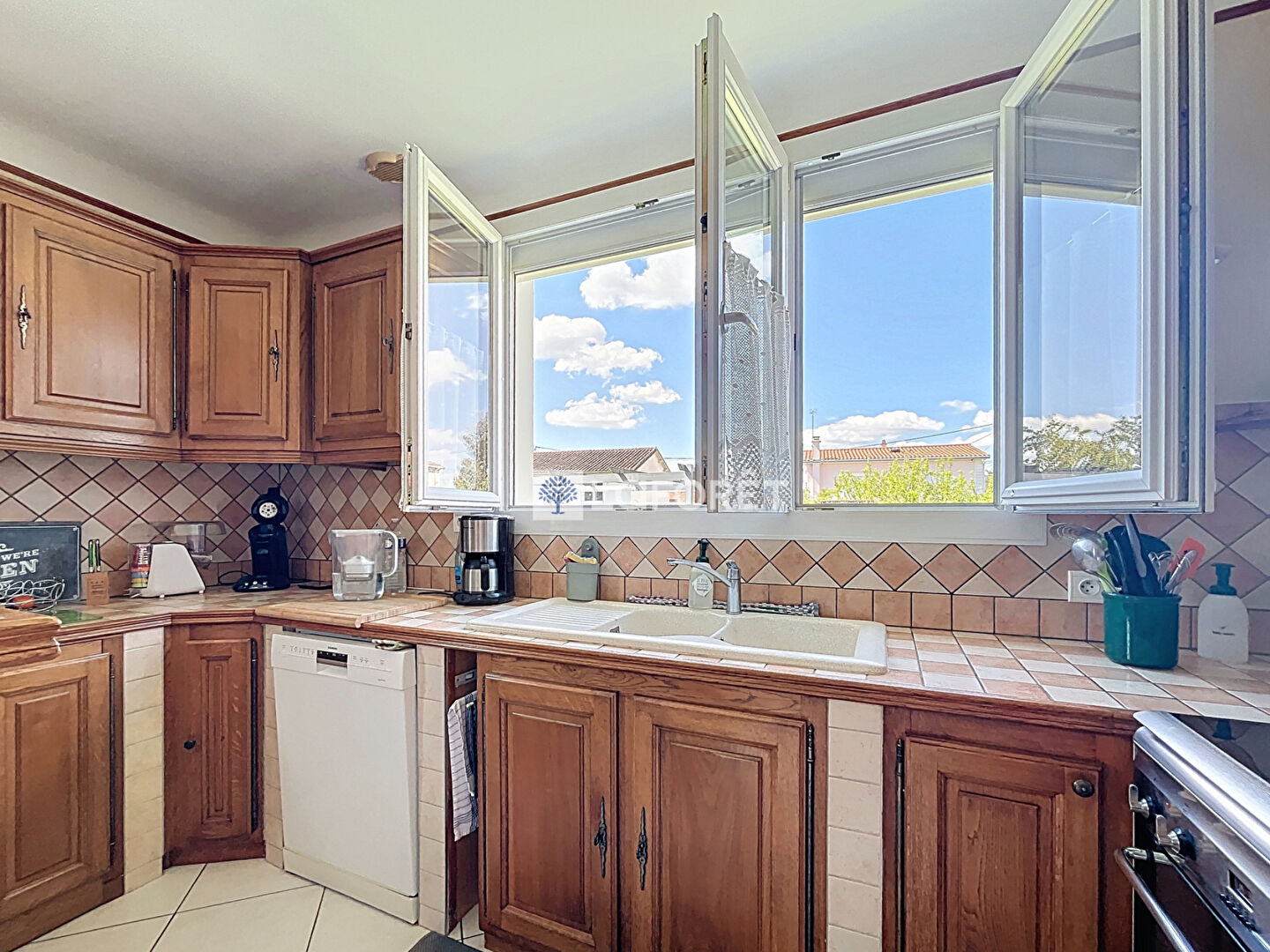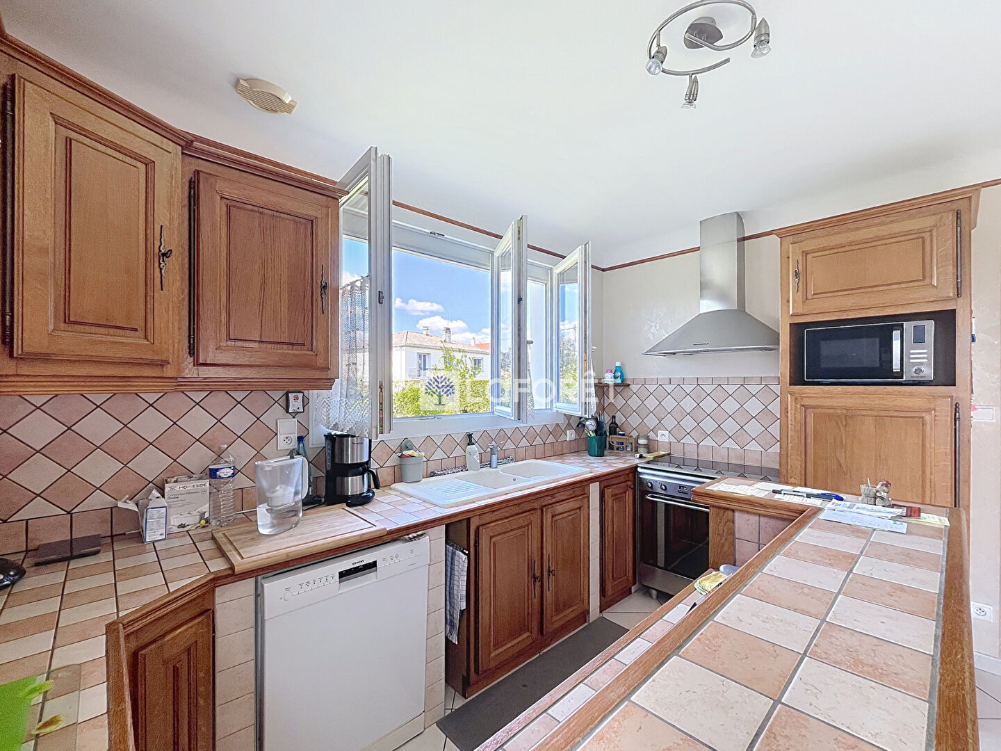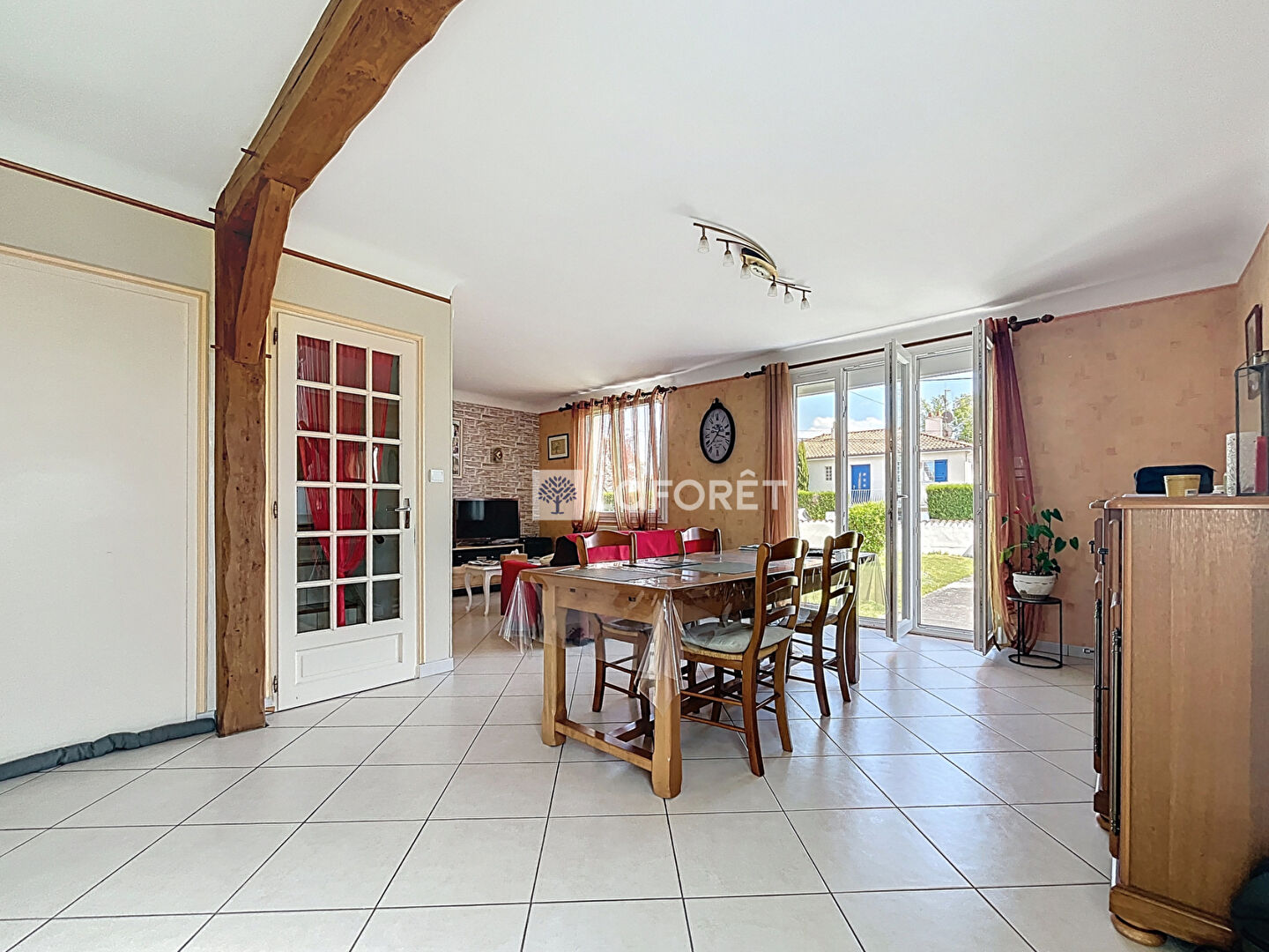 Entrée sur pièce de vie avec cuisine aménagée et équipée (gazinière hotte), ouvrant sur salle à manger, salon.