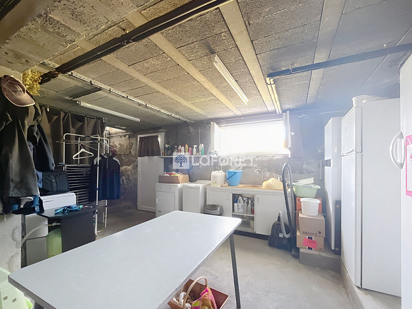 En sous-sol : une arrière cuisine buanderie, coin cave, un espace de rangement (anciennement garage).