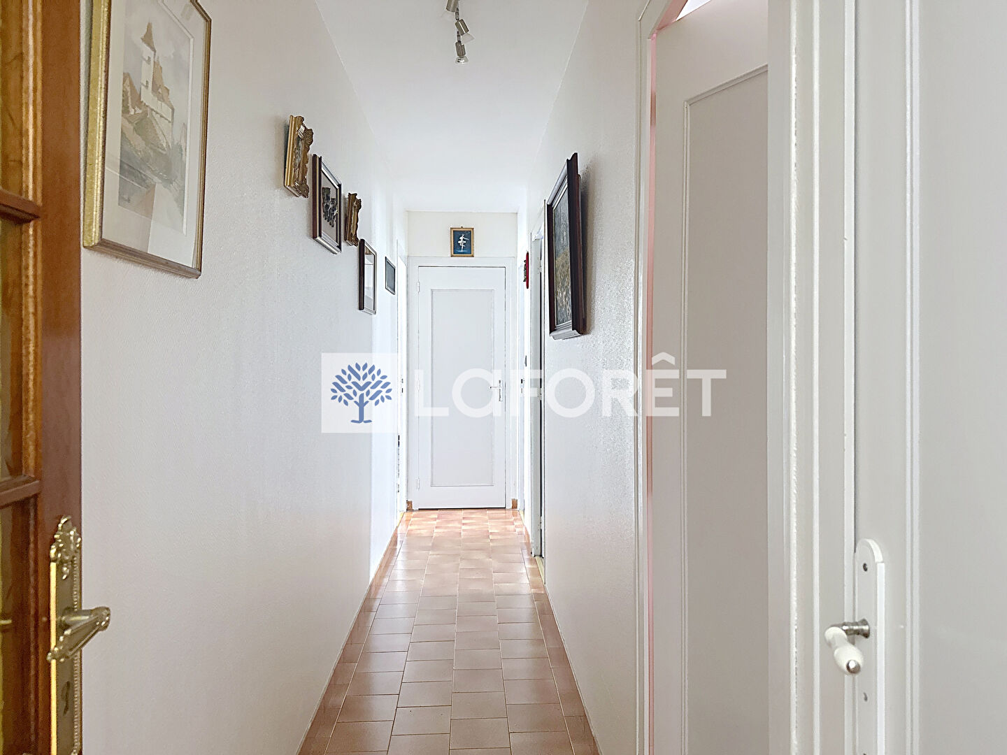 Un couloir dessert une salle de bains, un WC indépendant et trois chambres. Une arrière-cuisine mène à une suite parentale comprenant une salle d'eau et un WC.