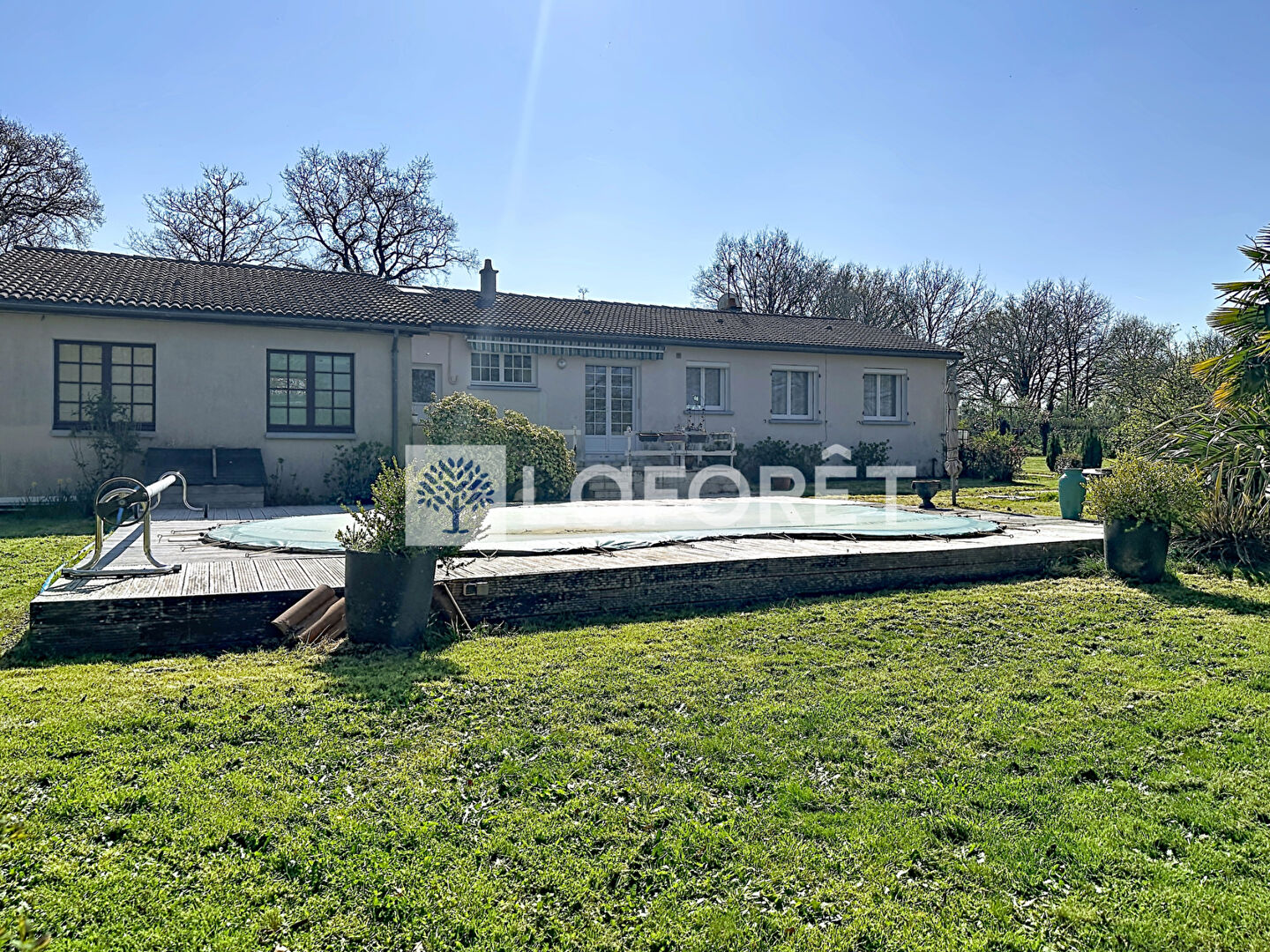 La maison séduit par sa luminosité et son environnement verdoyant. Elle est implantée sur une parcelle de 2443 m² et une piscine vient compléter l'ensemble.