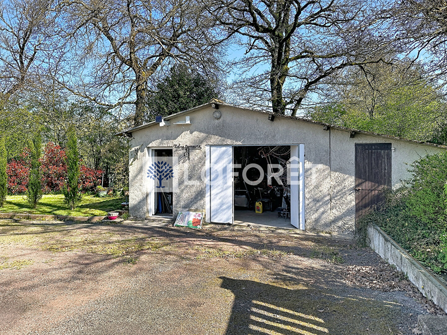 Le bien dispose également d'un double garage et d'une pièce supplémentaire. Une dépendance, équipée de l'électricité, peut servir de stockage ou d'atelier.