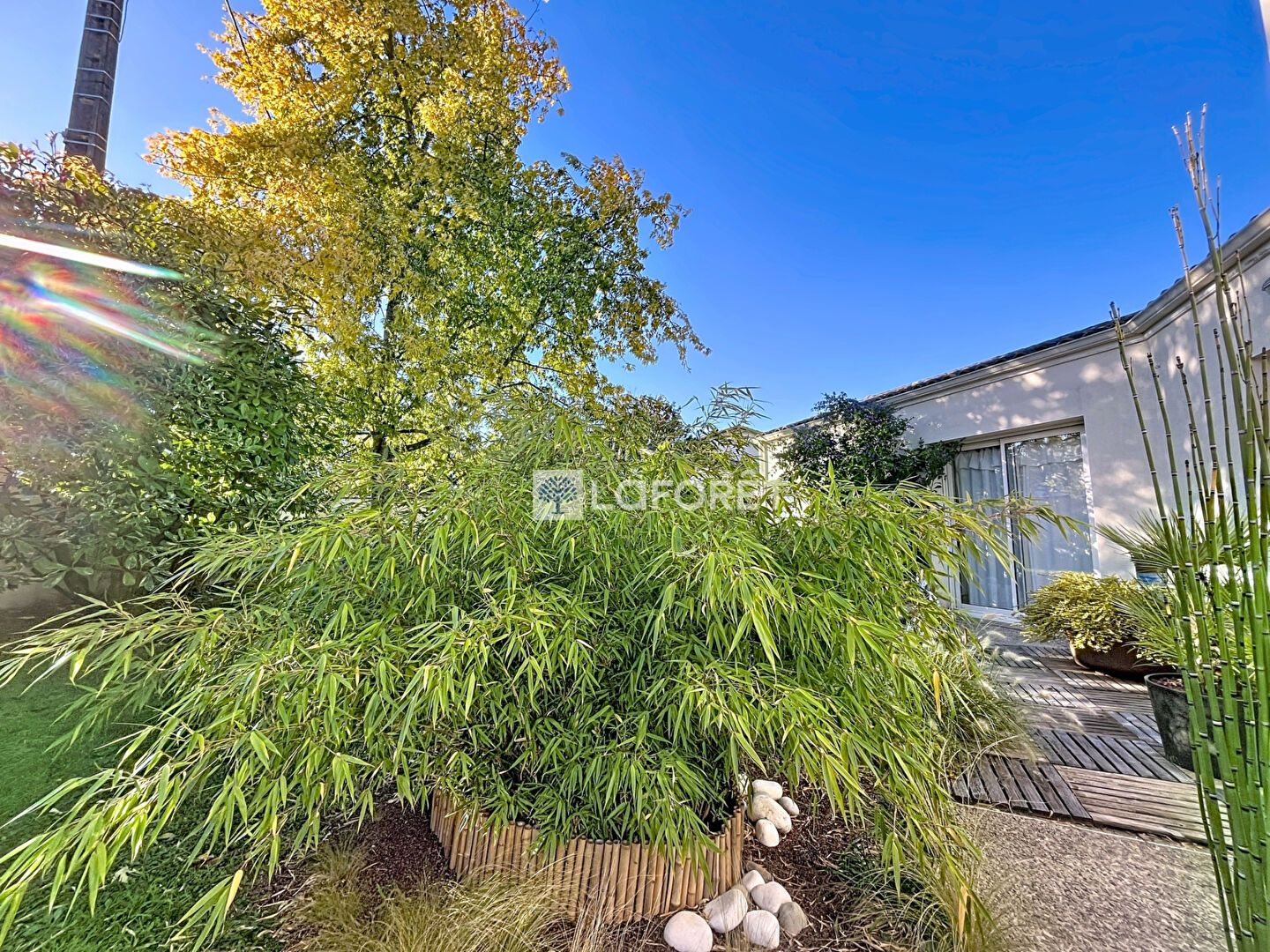 Entrée sur séjour - salon (orienté sud) salle à manger lumineux avec accès sur un jardin arboré et lumineux sans vis-à-vis, grâce à deux baies vitrées, cuisine aménagée, débarras lingerie (évacuations machine à laver), communiquant avec le garage (une voiture), disposant d'un accès au jardin (porte de service).