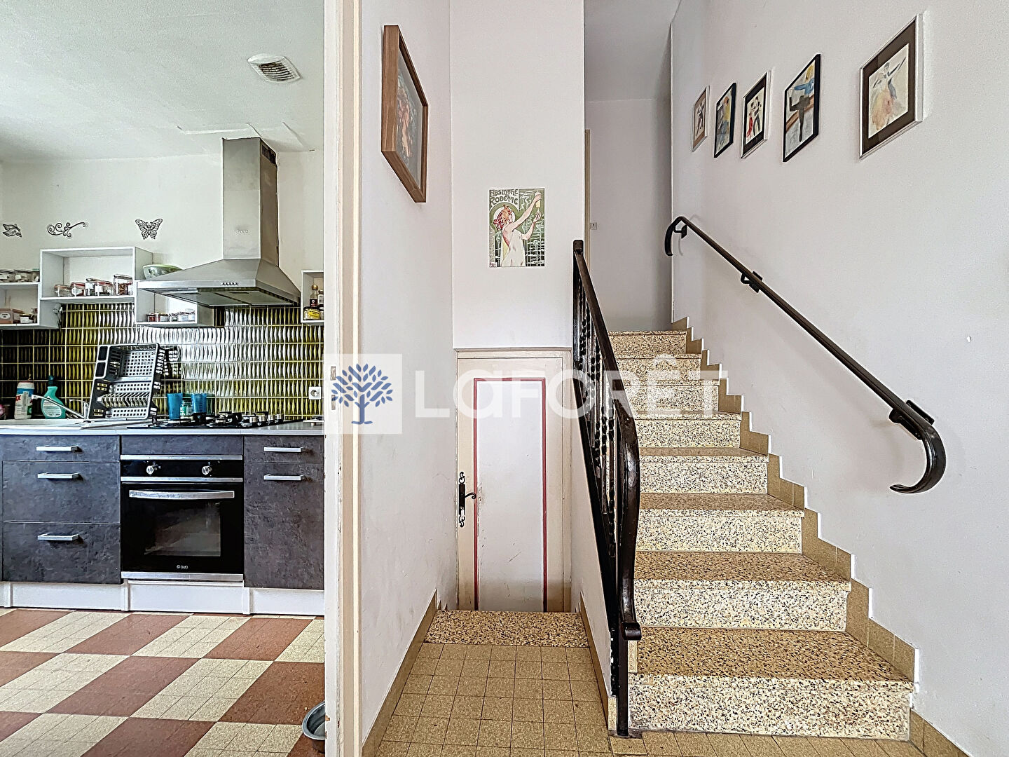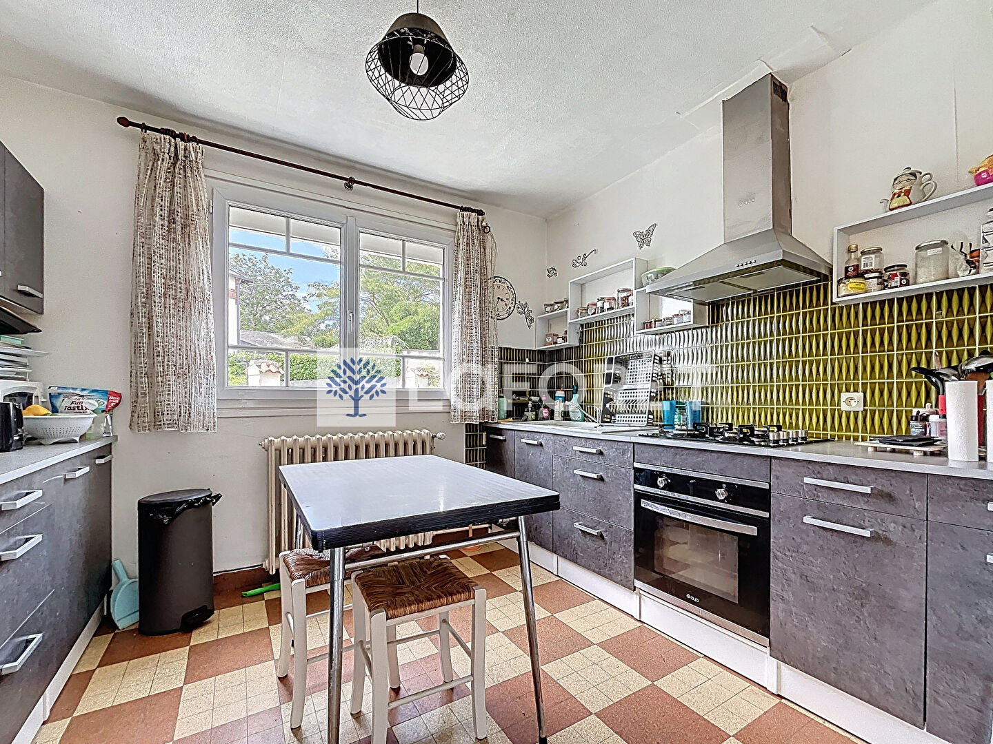 Véranda à l'entrée, entrée, séjour (parquets massifs), véranda (à rénover), cuisine aménagée (meubles hauts et bas) et équipée (four, plaque, hotte).