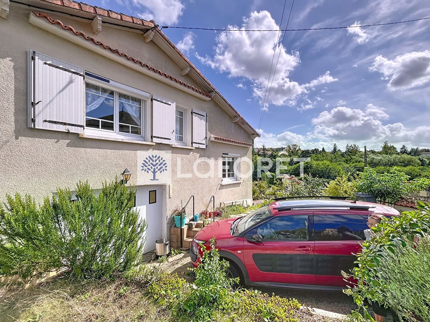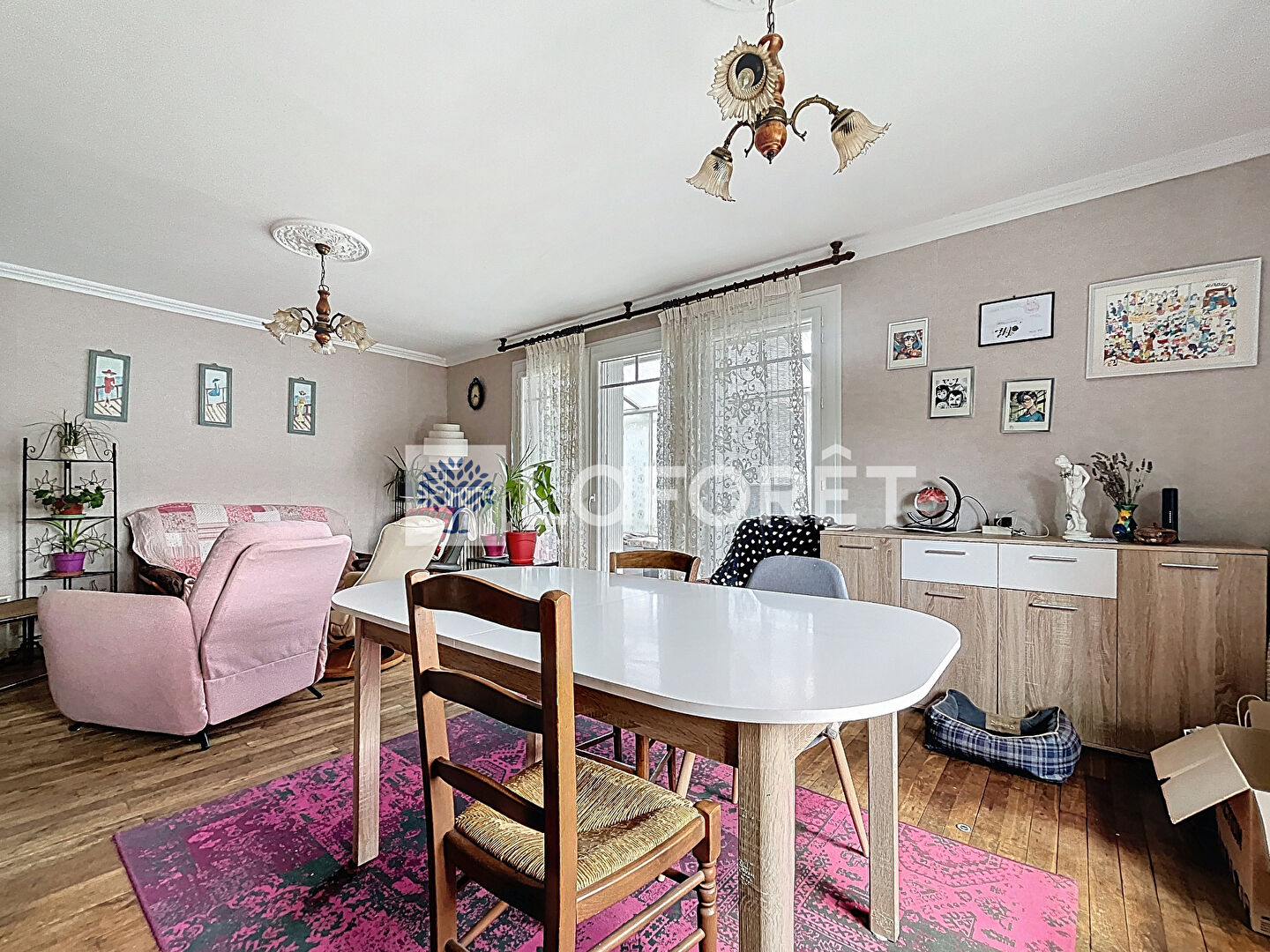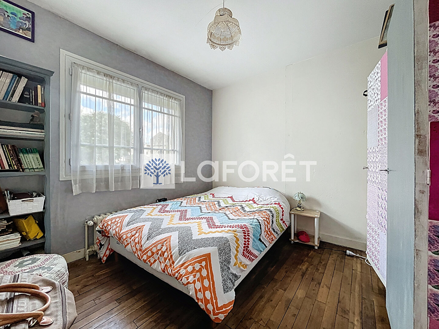 Etage (en demi-niveau) : couloir, trois chambres (parquets), salle d'eau, wc.