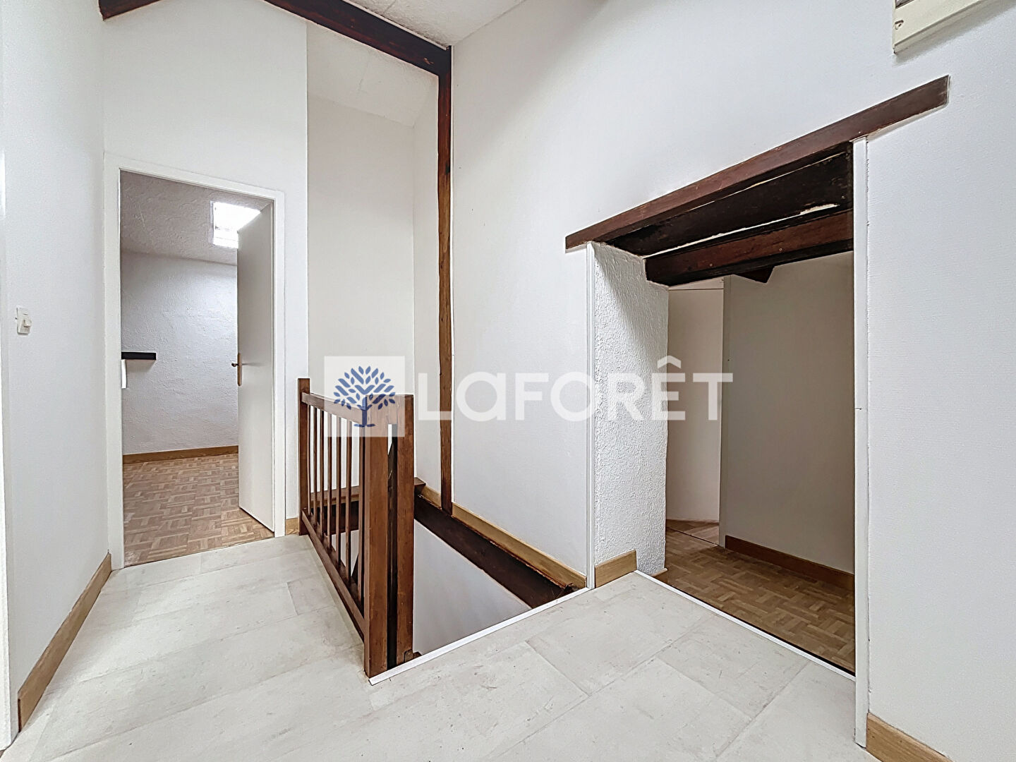À l'étage, un palier désert trois chambres et une salle de bain avec douche.