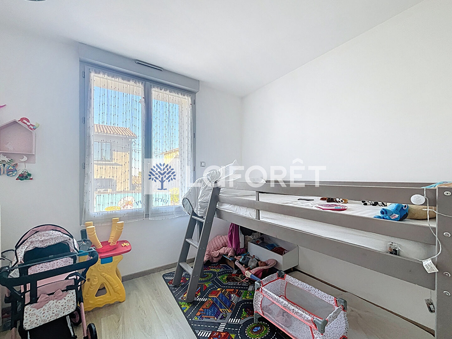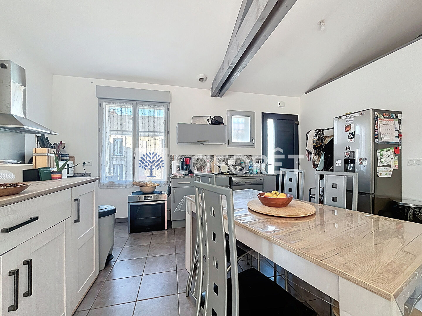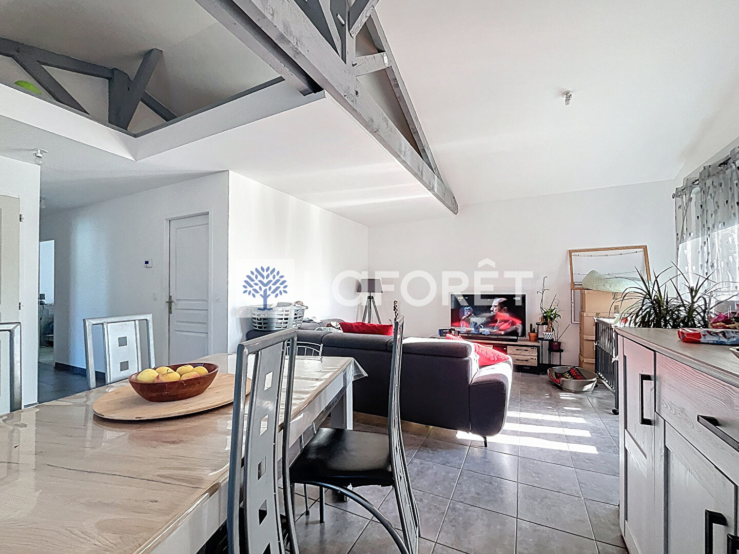 Dès l'entrée, vous découvrirez une cuisine ouverte donnant sur un salon-séjour lumineux, idéal pour les moments de convivialité. Un couloir dessert trois chambres équipées de placards, ainsi qu'une salle d'eau moderne avec douche à l'italienne.