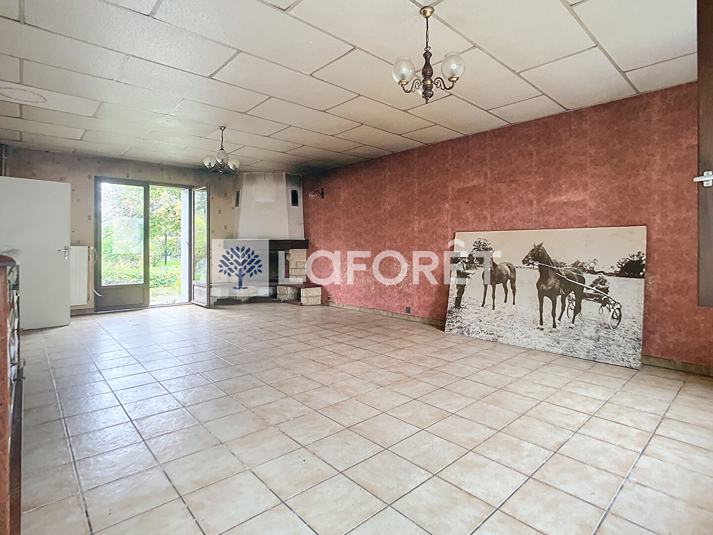 Elle se compose d'une entrée sur une pièce de vie équipée d'une cheminée avec insert, ainsi que d'un espace cuisine.