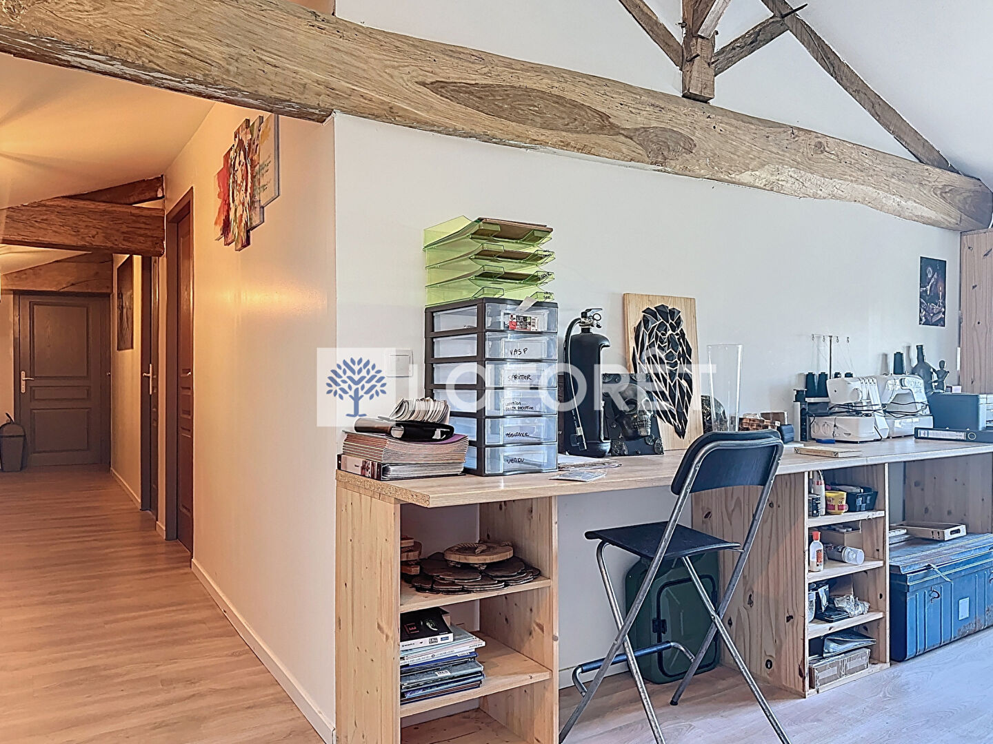 À l'étage, un vaste palier vous laisse libre cours à vos envies : bureau, espace de jeux pour les enfants ou couchage d'appoint.