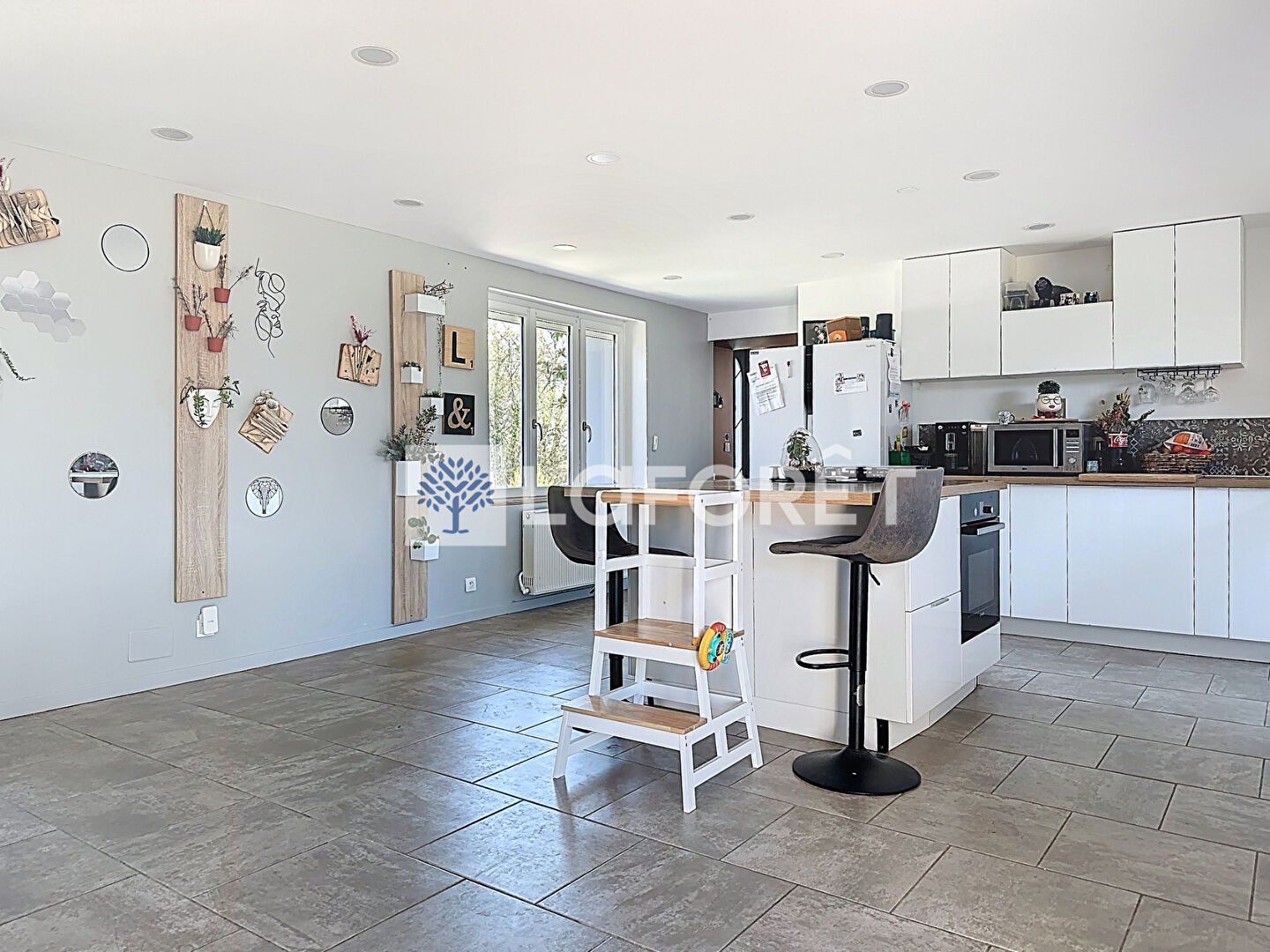 Dès l'entrée, vous serez accueilli par de beaux volumes qui s'ouvrent sur une spacieuse pièce de vie baignée de lumière. La cuisine aménagée et équipée, ouverte sur le séjour, crée un espace convivial et chaleureux, idéal pour partager des moments en famille ou entre amis.