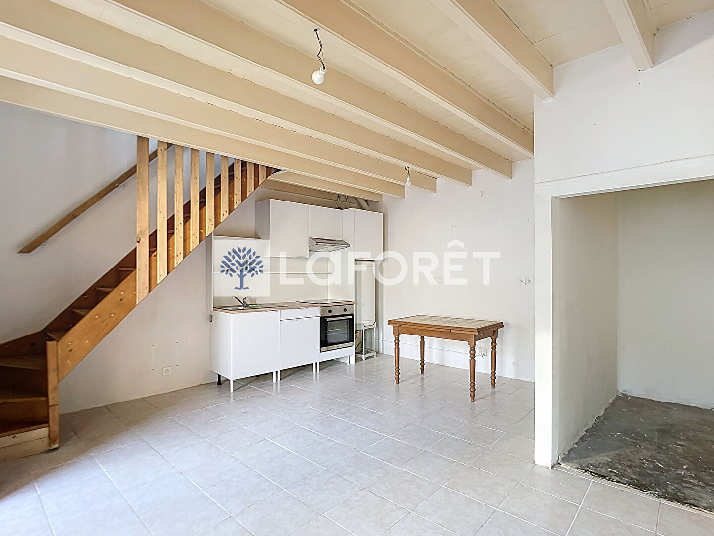 Maison comprenant une pièce de vie avec un espace cuisine équipée et aménagée ( four, plaque de cuisson, hotte) et un cellier.