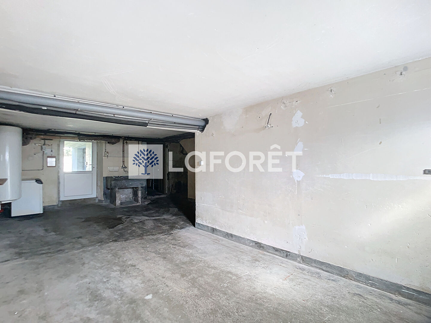 Un garage avec un espace buanderie et une cave.