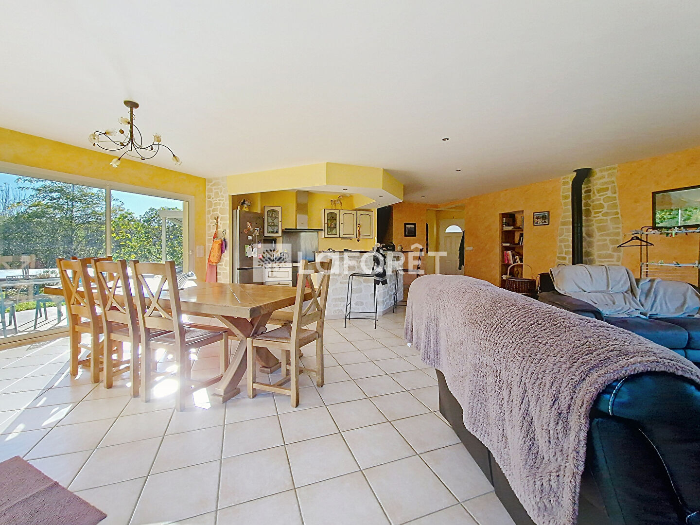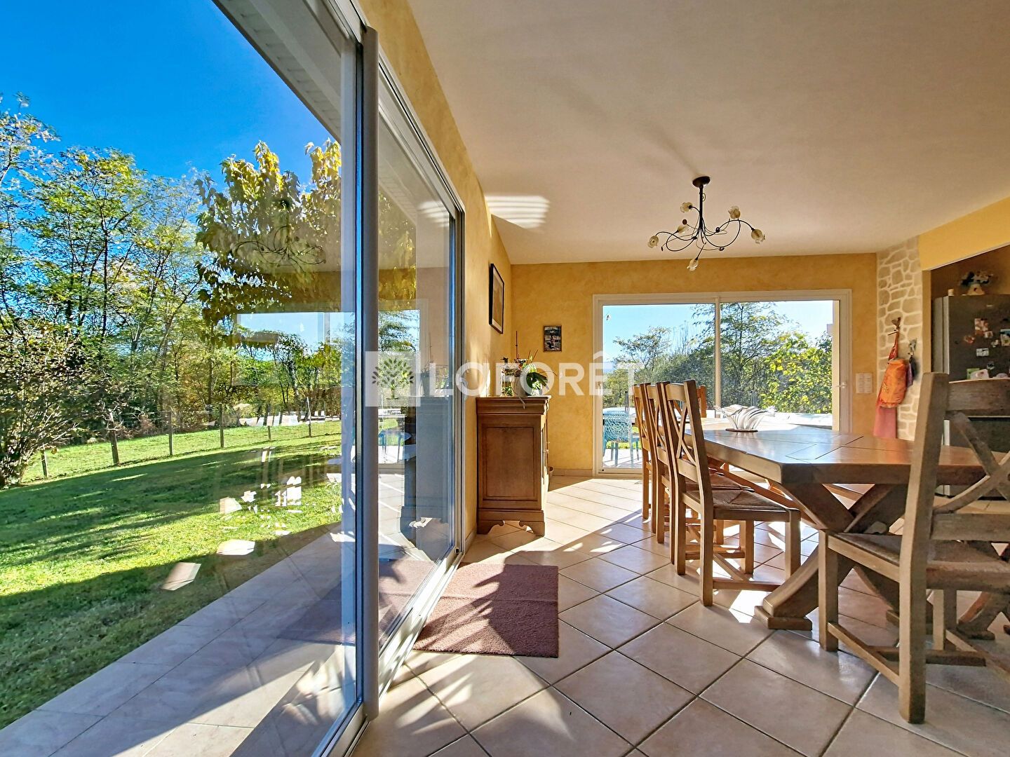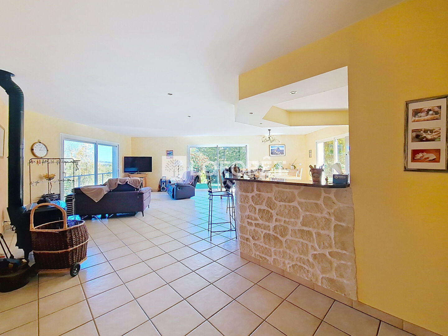 Une cuisine ouverte et aménagée s'intègre à cet espace de vie et permet d'accéder à une belle terrasse exposée sud avec en prolongement une piscine au sel, invisible pour les regards indiscrets.