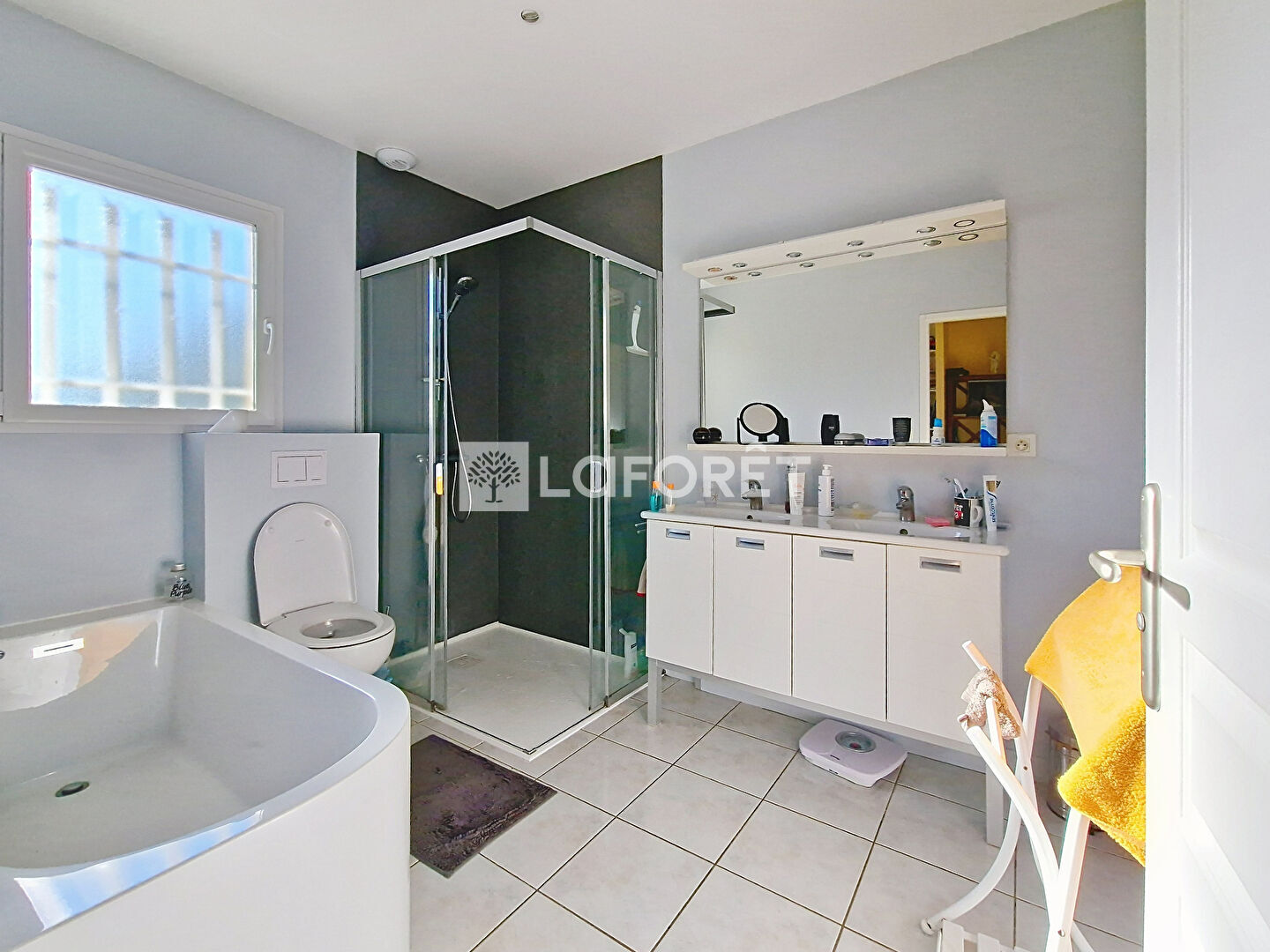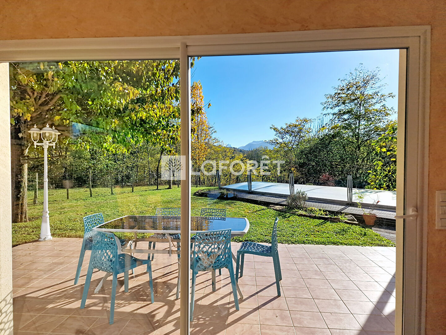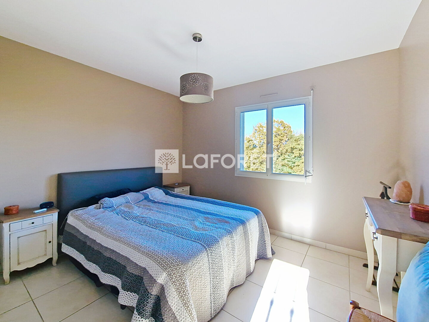 Une cuisine ouverte et aménagée s'intègre à cet espace de vie et permet d'accéder à une belle terrasse exposée sud avec en prolongement une piscine au sel, invisible pour les regards indiscrets.
