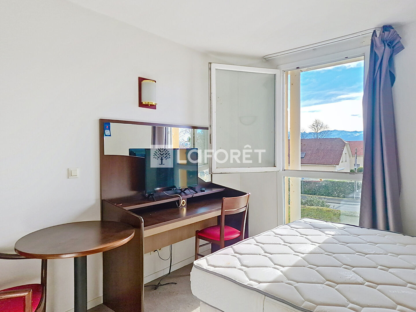 Il offre une pièce à vivre lumineuse avec un lit et un coin bureau avec TV écran plat, une kitchenette équipée (plaque, hotte, micro-ondes, mini lave-vaisselle, réfrigérateur), une salle d'eau comprenant douche, lavabo et wc. A l'extérieur une place de parking privative.