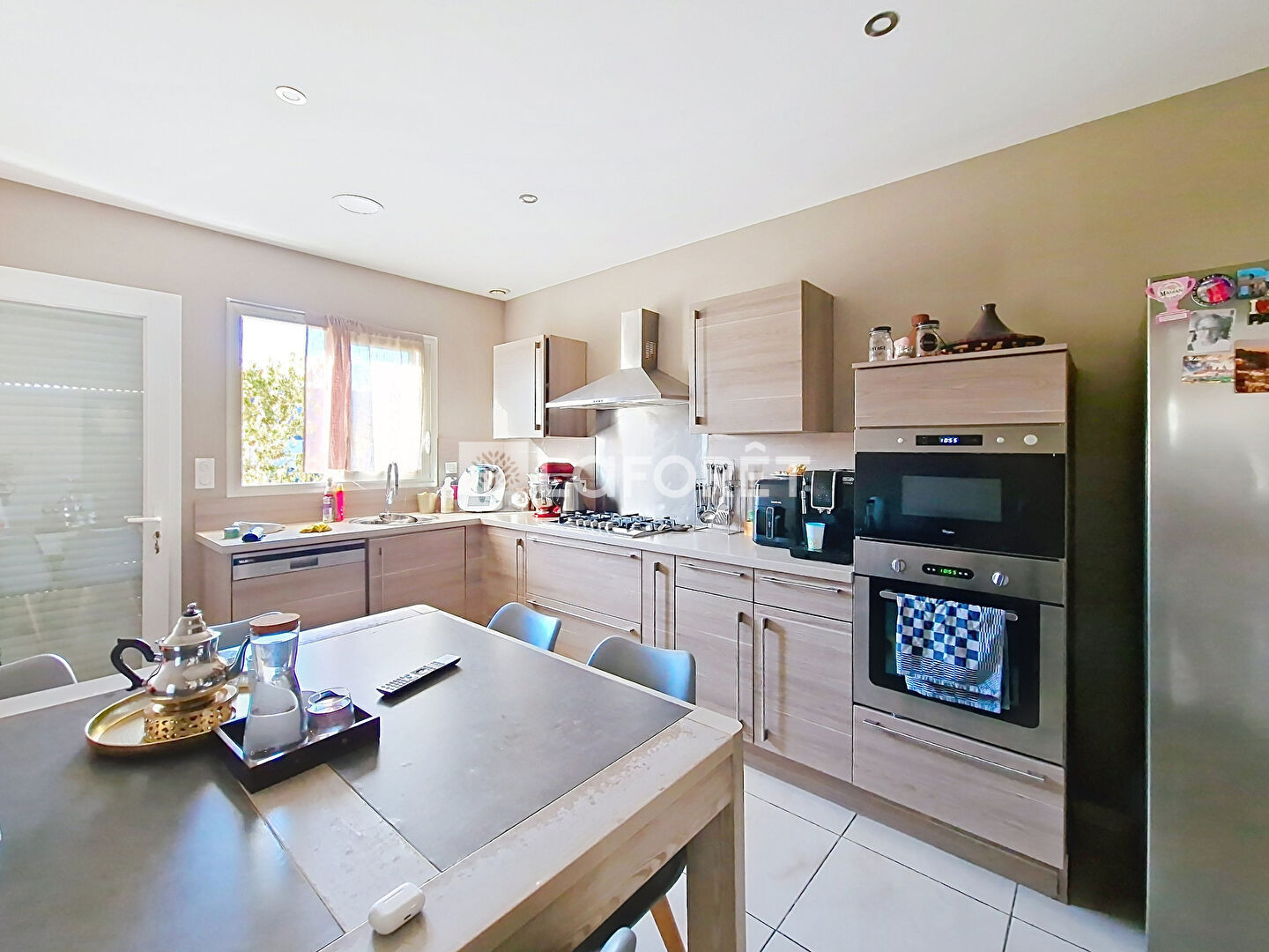 Dès l'entrée, vous serez face à une belle distribution : une pièce de vie spacieuse et lumineuse avec une fenêtre et une baie vitrée, une cuisine moderne et entièrement équipée, une buanderie et un cellier complémentaires et fonctionnels, 4 belles chambres confortables, une salle de bain avec un wc, et un deuxième wc indépendant.