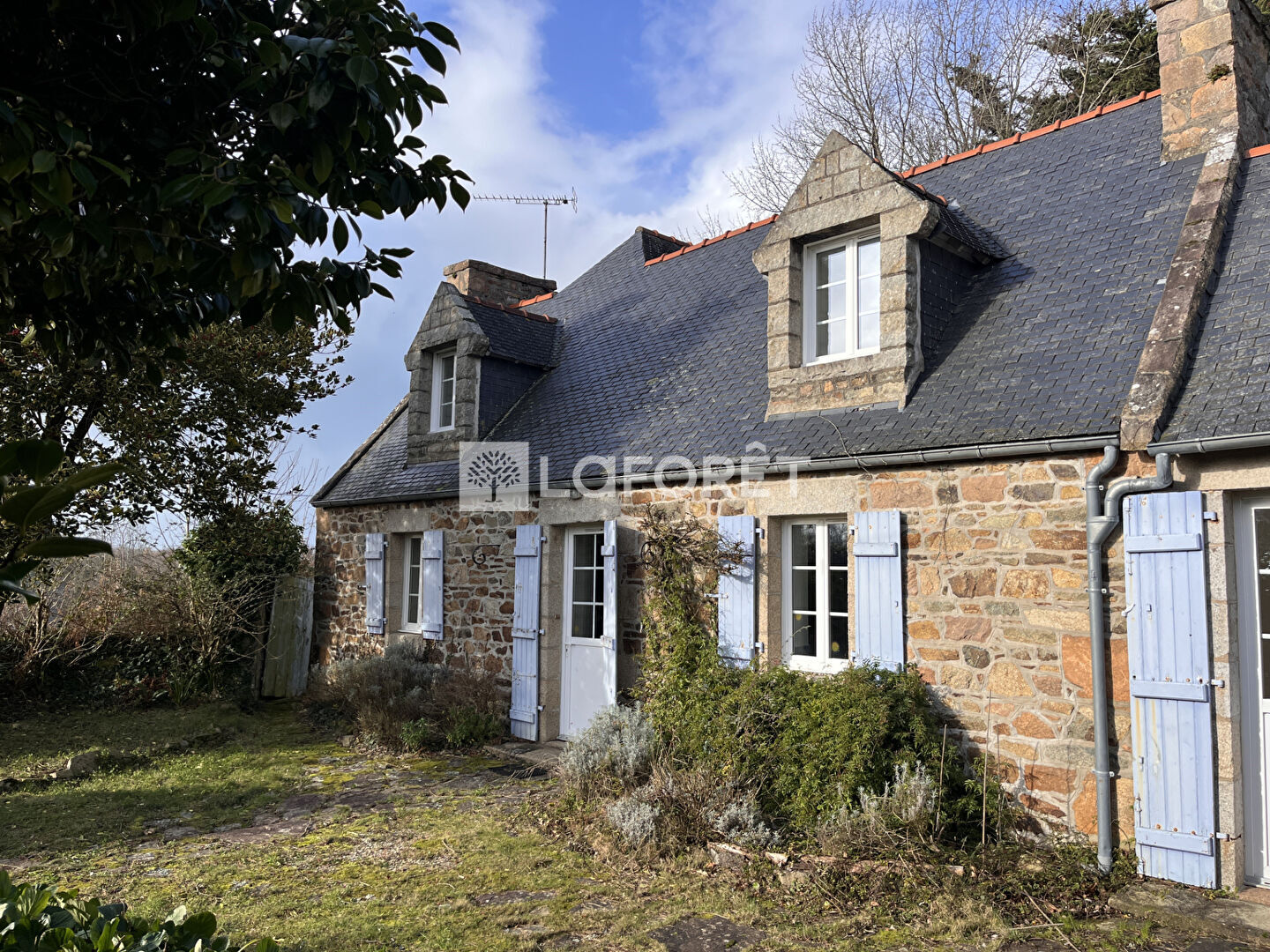 Charme de l'ancien pour cette maison en pierre avec extension lui apportant lumière et vue dégagée. Située sur les hauteurs de Buguélès, cet ensemble va vous surprendre par son côté atypique.