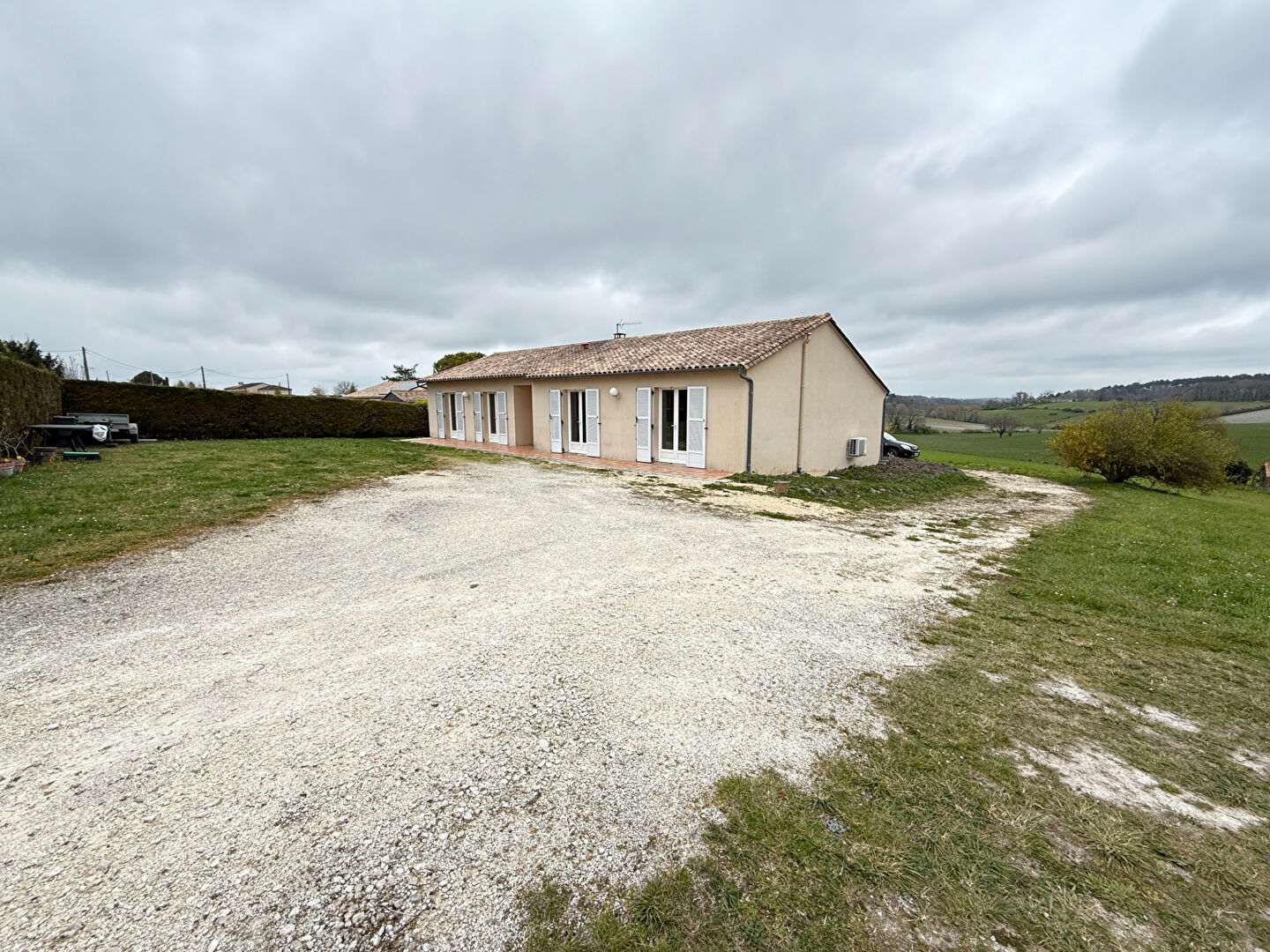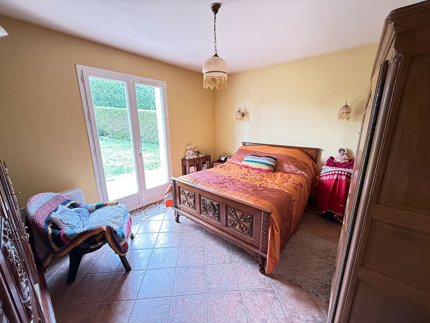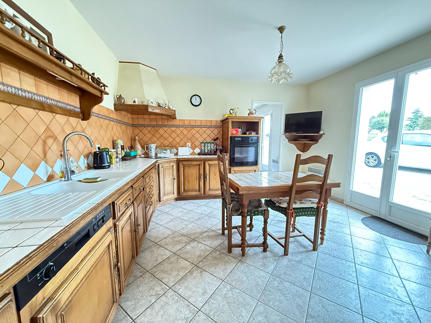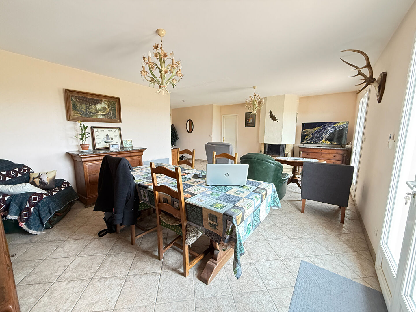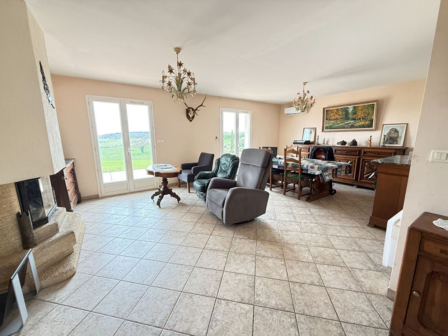Dès l'entrée, vous découvrirez un bel espace de vie baigné de lumière, composé d'un salon-séjour chaleureux avec accès direct à une agréable terrasse, idéale pour profiter des beaux jours face aux terres agricoles. La cuisine, aménagée et équipée, se distingue par ses volumes généreux et son grand cellier attenant, très pratique au quotidien.