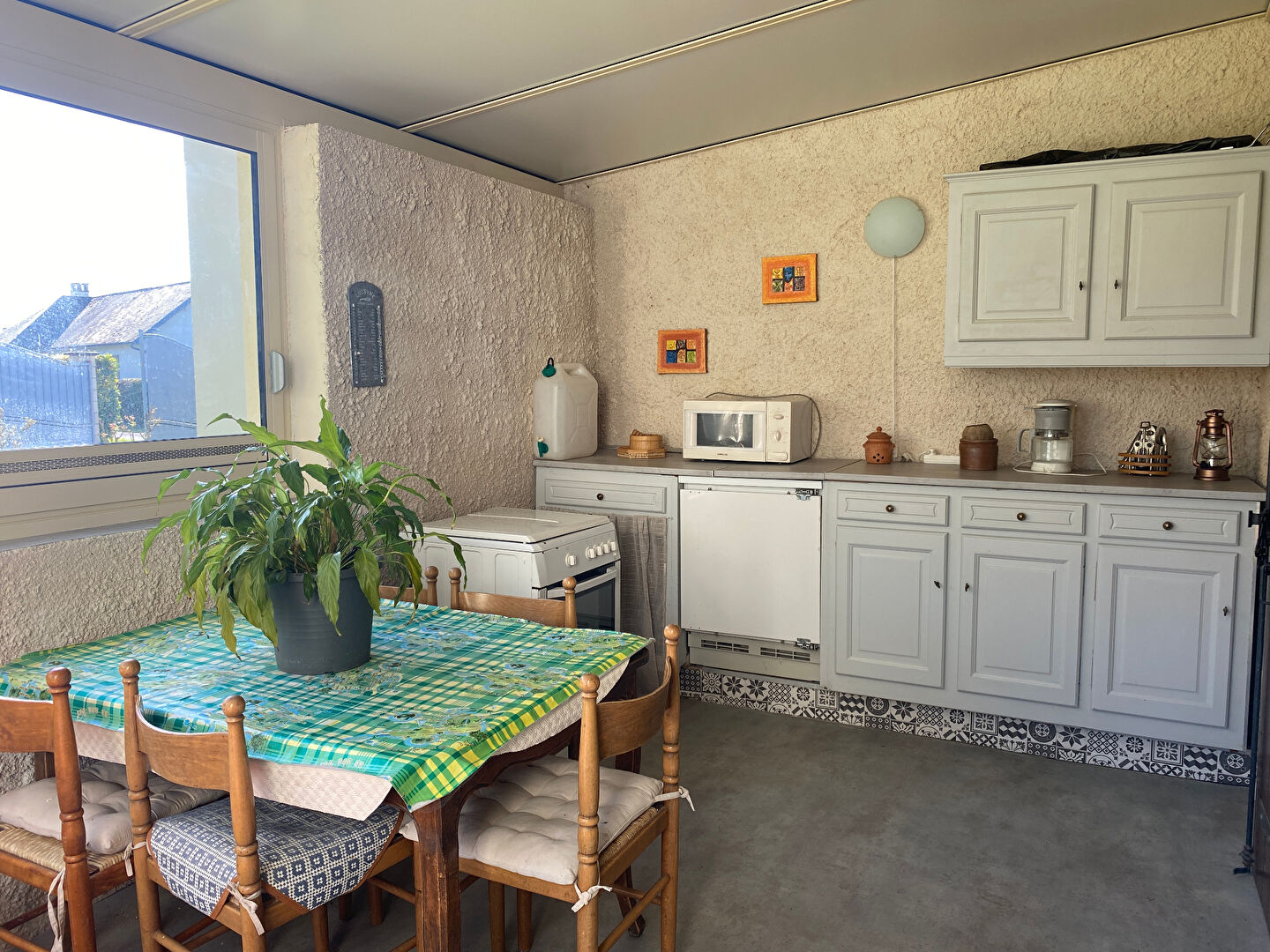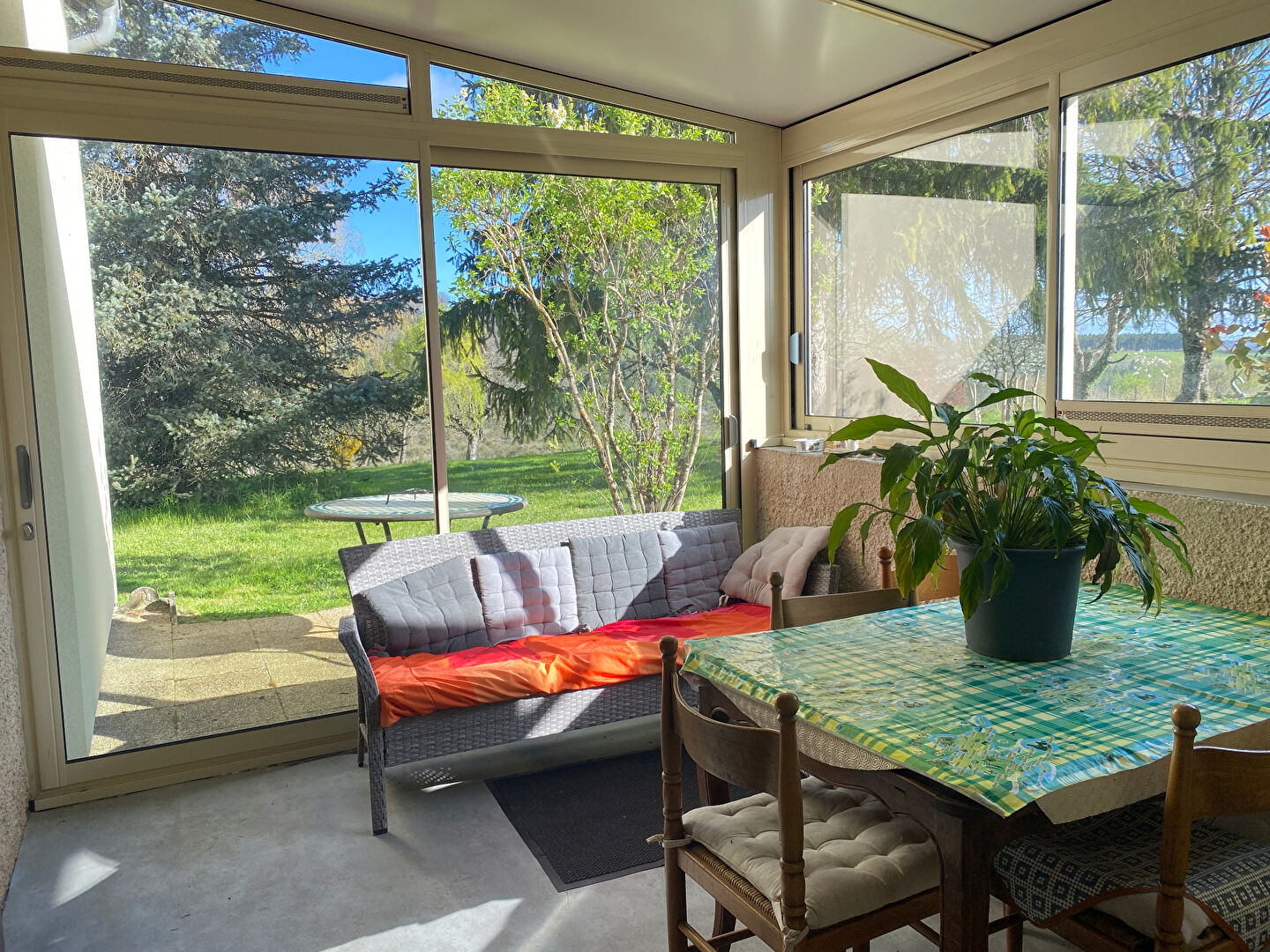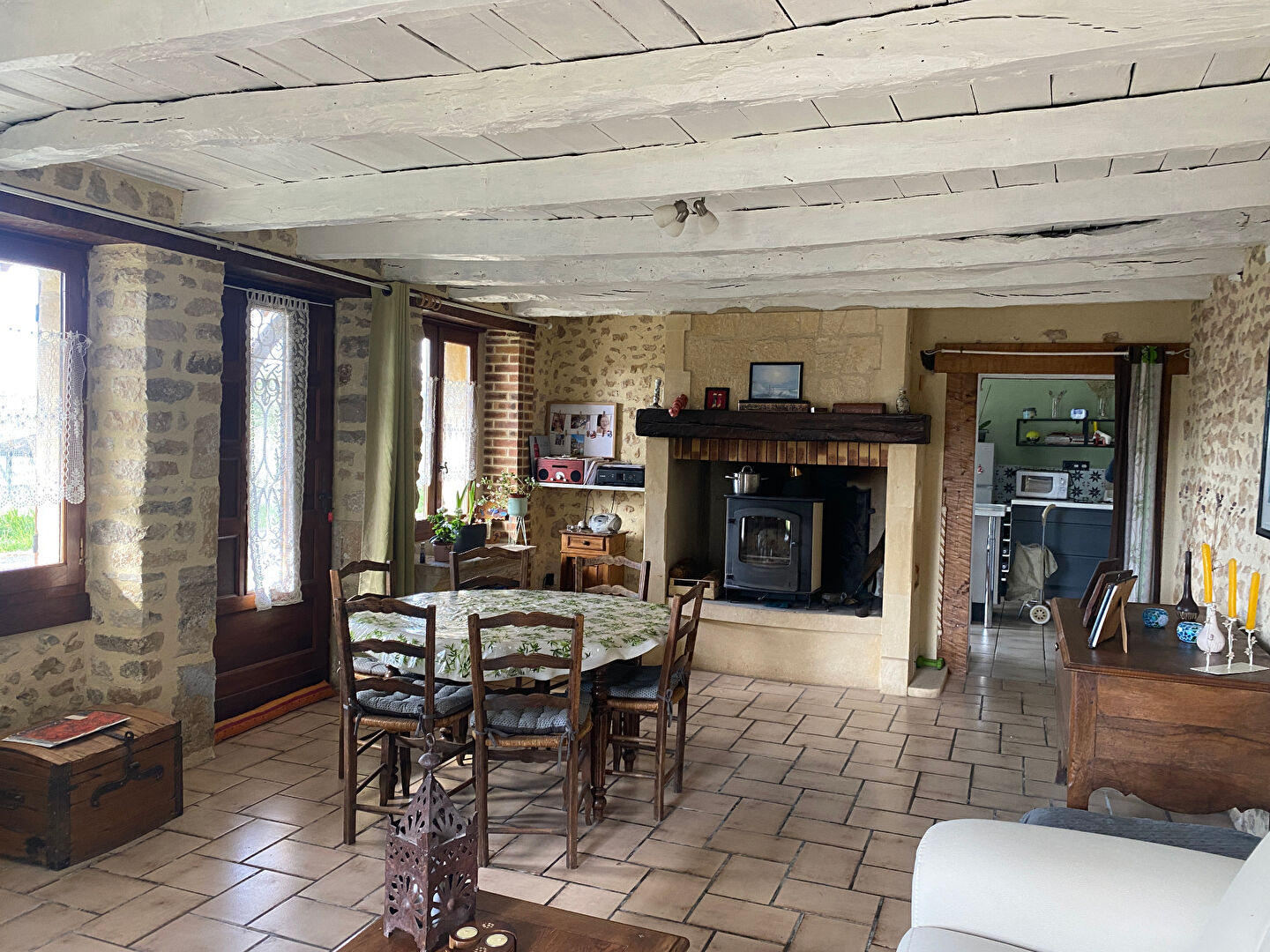 Au rez de chaussée: véranda avec cuisine d'été, une cuisine aménagée, un séjour pierre et poutres apparentes avec cheminée et poêle bois, dégagement, WC, une chambre avec placard, une salle d'eau. A l'étage: grande mezzanine (possibilité chambre), deux chambres mansardées, salle de bains, WC.