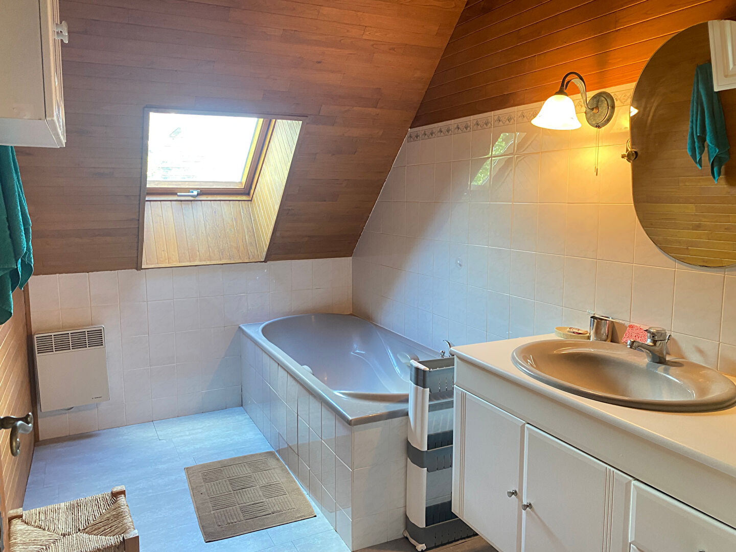 Menuiseries bois double vitrage. Chauffage poêle bois et radiateurs électriques. Panneaux photovoltaïques. Assainissement individuel.