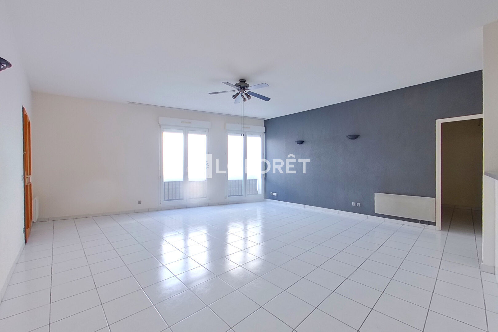 Ce logement spacieux et fonctionnel se compose d'un grand séjour lumineux de 41 m² avec cuisine ouverte entièrement aménagée et équipée, une arrière-cuisine, deux chambres avec placards, une chambre avec rangements, une salle de bains et des WC séparés.