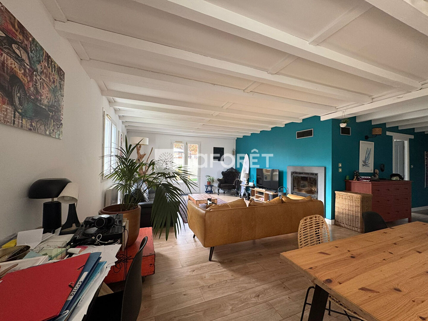 D'une surface de 122 m², elle se compose d'une belle pièce de vie ouverte sur une cuisine équipée, de trois chambres généreuses baignées de lumière, d'une salle d'eau et d'un WC séparé. Un espace mezzanine aménagé en bureau, un cellier pratique et un atelier aux beaux volumes complètent harmonieusement les espaces intérieurs.