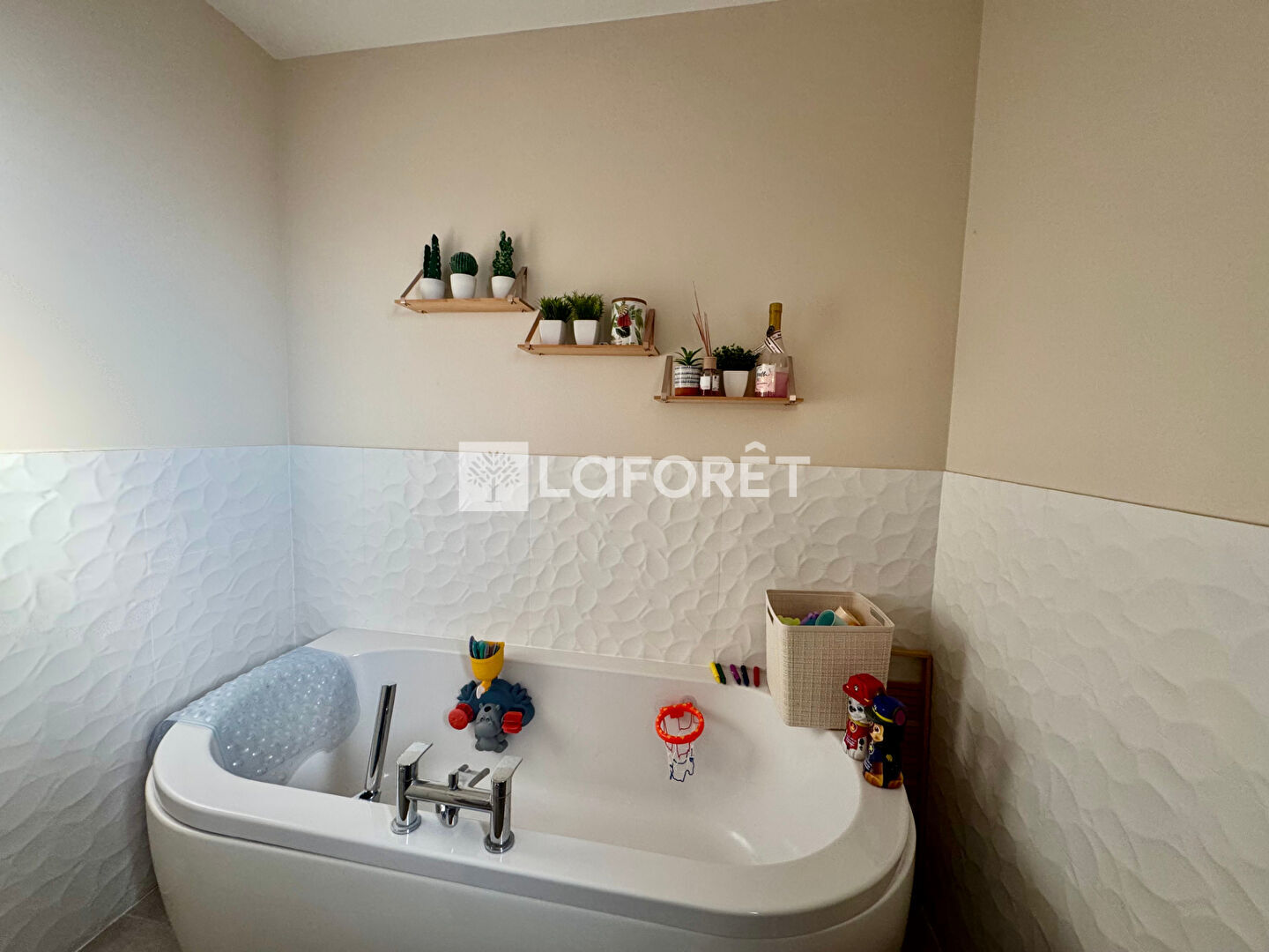 A l'étage, trois chambres, une salle d'eau avec baignoire/douche, WC indépendants.