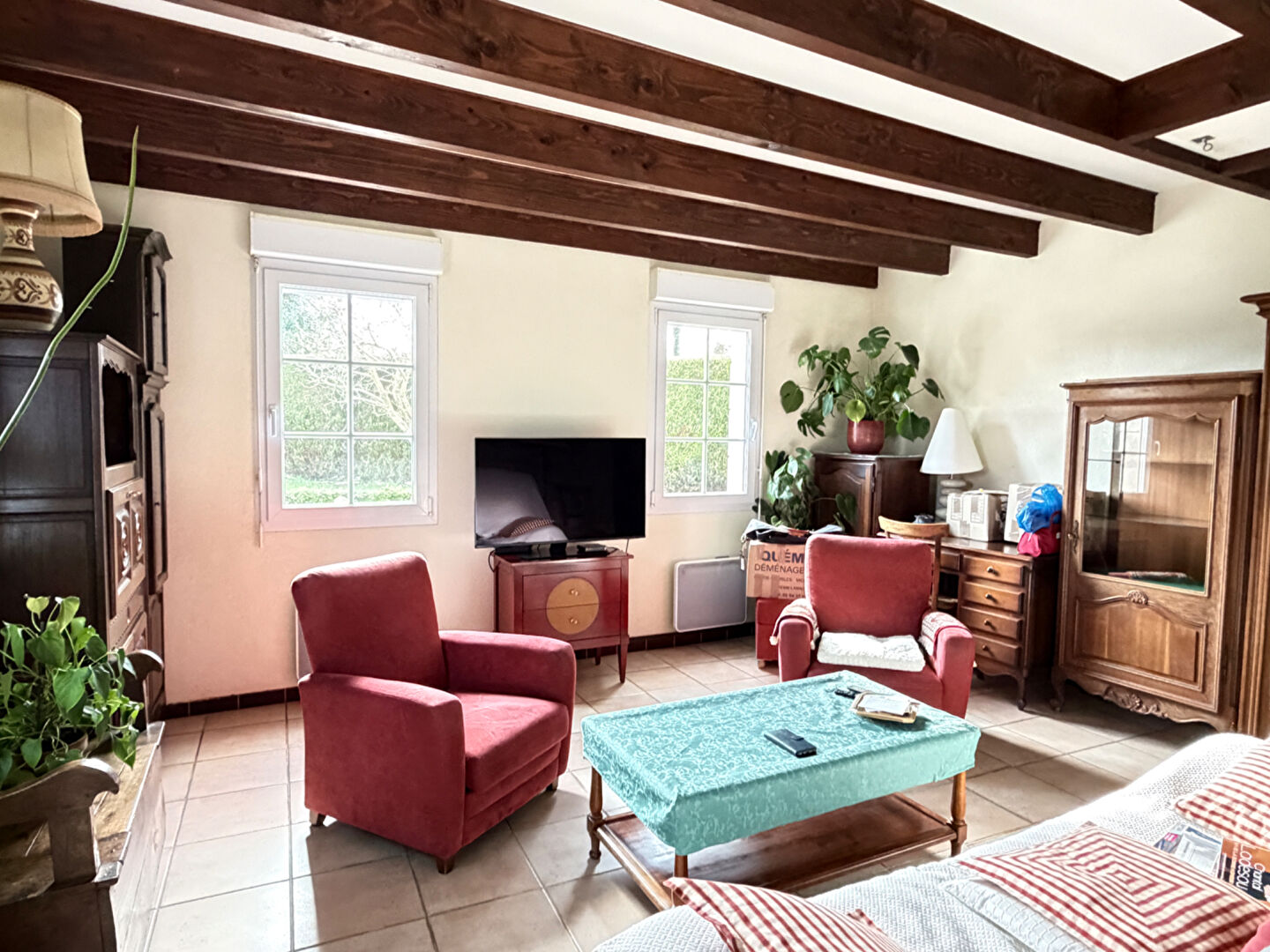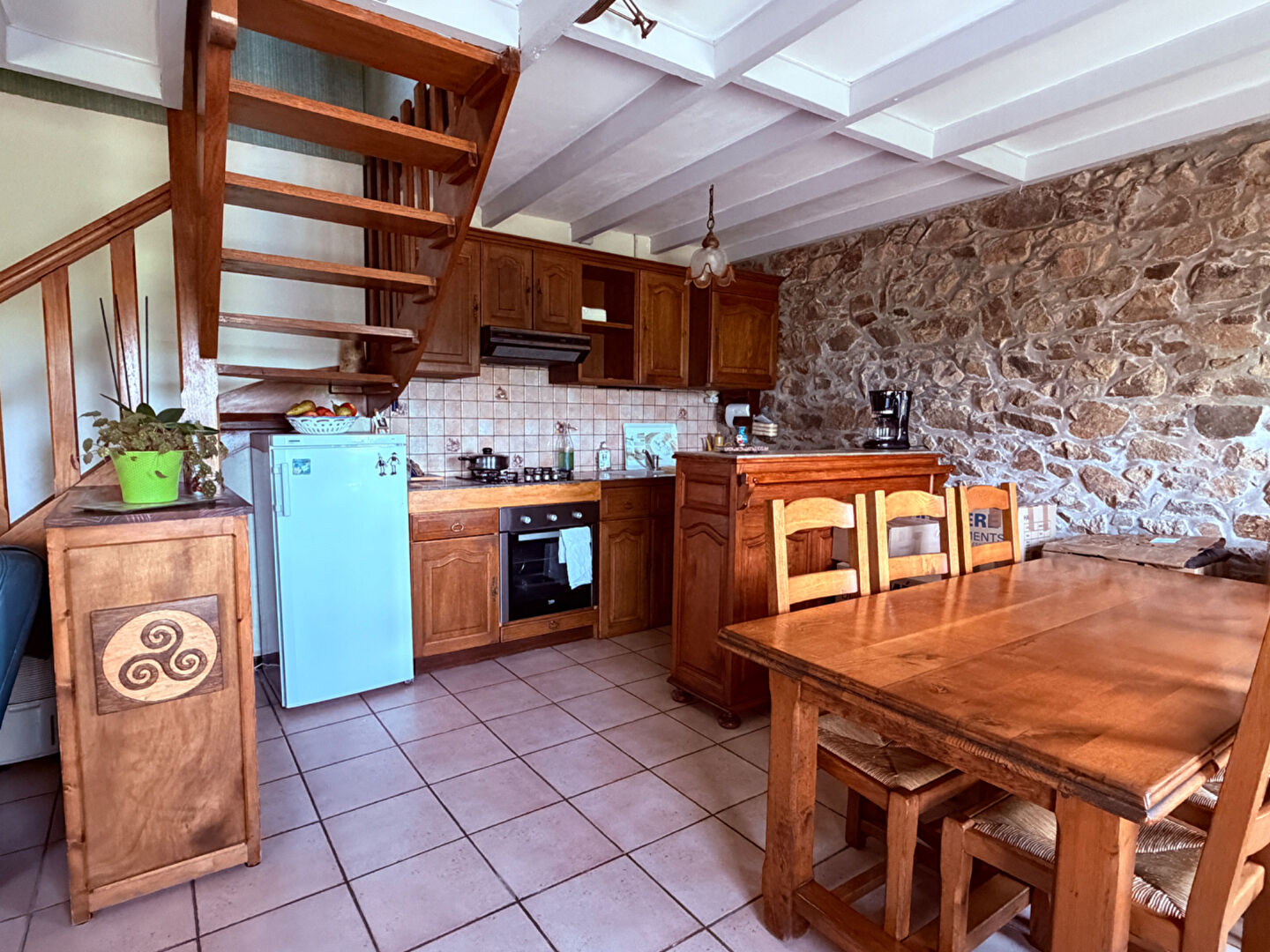 La maison se compose au rez de chaussee d une belle piece de vie conviviale avec cuisine ouverte et poele a bois, ainsi qu un salon. Une salle d eau independante, non communicante avec la maison, complete ce niveau.
