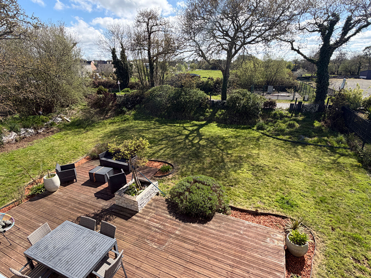Implantée sur un terrain de 804 m² exposé plein sud, la maison bénéficie d'une vue dégagée, sans vis-à-vis ni nuisance.