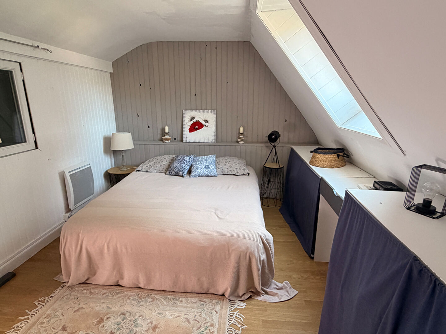 À l'étage, une chambre confortable vous attend, offrant un cocon paisible après vos journées en bord de mer.