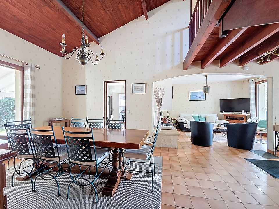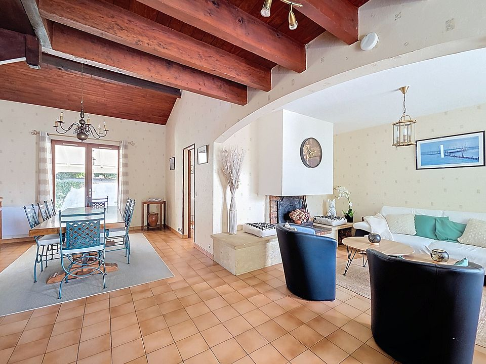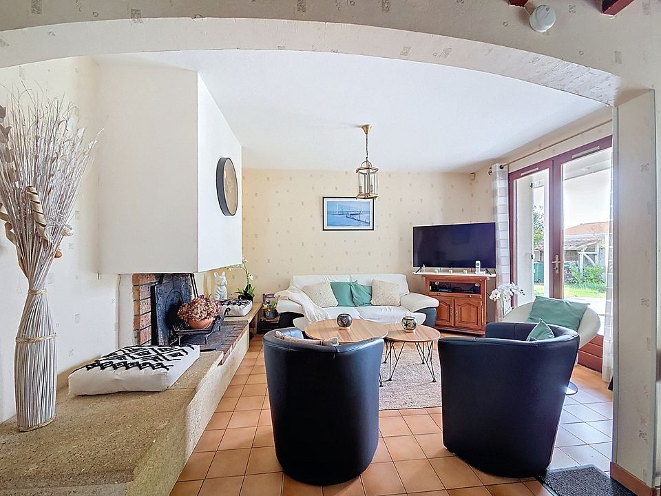 Elle comprend au rez de chaussée : une entrée, un spacieux salon-séjour baignée de luminosité, avec une cheminée, idéal pour recevoir les amis et la famille.