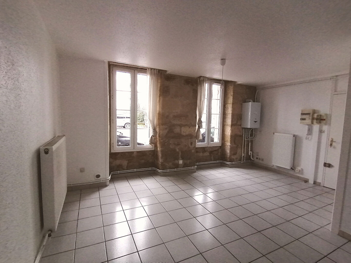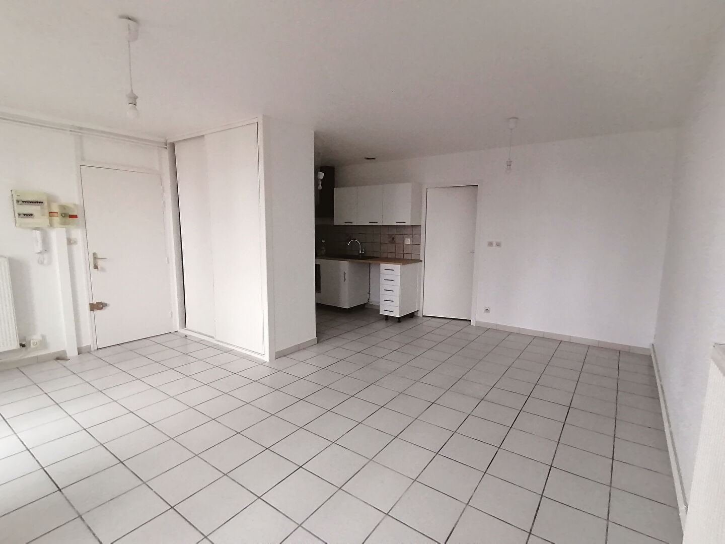 Appartement T1 en rez de chaussée comprenant un séjour avec placards, une cuisine aménagée et équipée, une buanderie, une salle d'eau et un cellier.