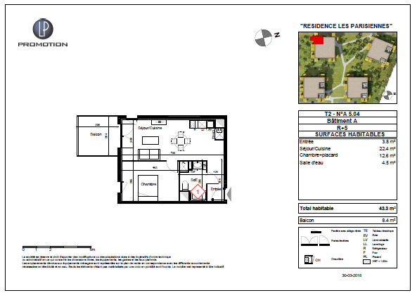 Sur l'avenue de Paris, dans une résidence récente, appartement T2 composé d'un séjour avec coin cuisine aménagé et équipé, une salle d'eau avec WC, une chambre et un balcon.